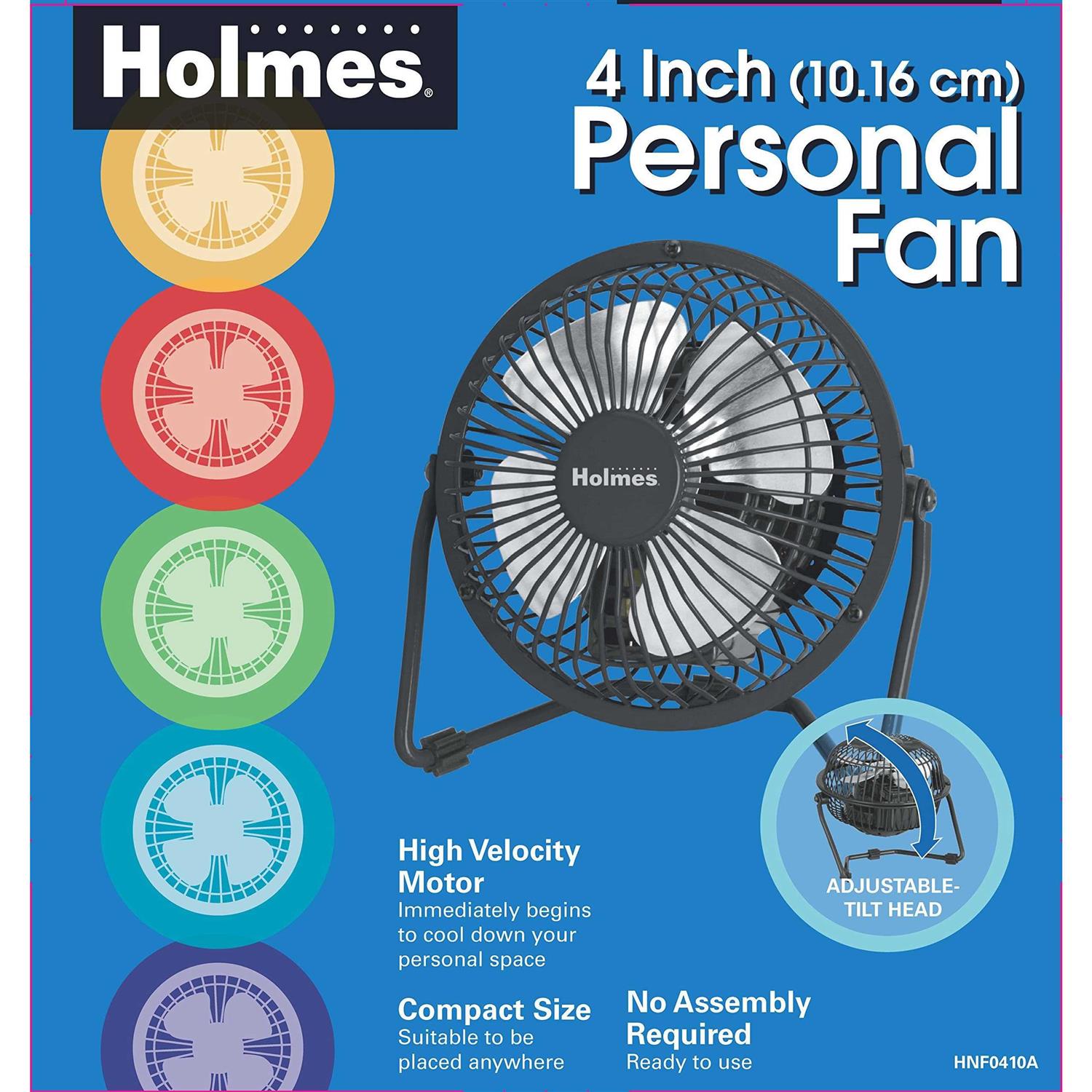 The Holmes Mini High Velocity Personal Fan delivers a small but powerful personalized burst of cool, refreshing air just about anywhere you need it. A high-velocity motor offers concentrated airflow, while a tilt-adjustable head allows you to direct the airflow to wherever you want it. This small fan has metal front and rear grills and requires no assembly. Its sleek, portable design is great for use on desks and bedside tables.
