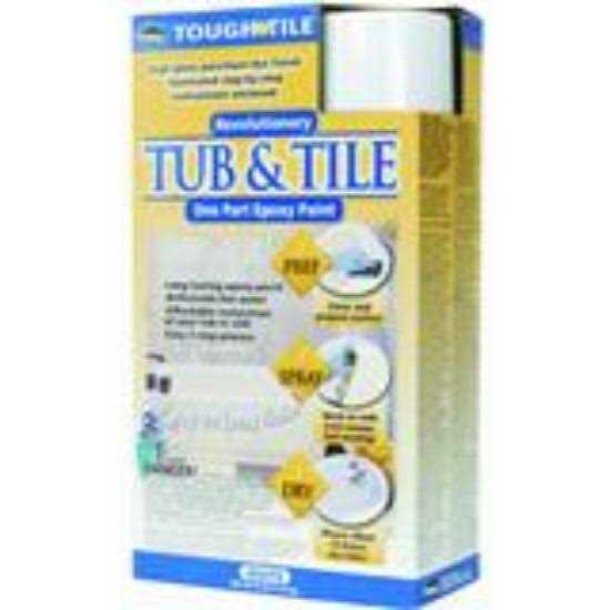 Give your aging tub or sink a fresh look with the Homax Tub Tile Spray-On Epoxy. A new revolutionary one part tough as tile epoxy paint provides a hard protective finish that remains beautiful for years. The one part epoxy means no mixing no mess and a longer shelf life. Refinishing or recoloring your tub or sink eliminates the time hassle and expense of a complete bathroom remodel. The self-leveling finish leaves a smooth high-gloss porcelain-like surface breathing new life into your old worn out tub or sink. With advanced technology this finish will dry faster and offer superior adhesion. It is very important to follow surface preparation instructions to ensure good adhesion of the finish coat. The spray is bright white in color and covers approximately 30 to 38 sq. ft. Allow 5 day curing time before exposure to water.There is no need for plumbers or carpenters to replace expensive fixtures and your friends will think you hired a professional to do the job.