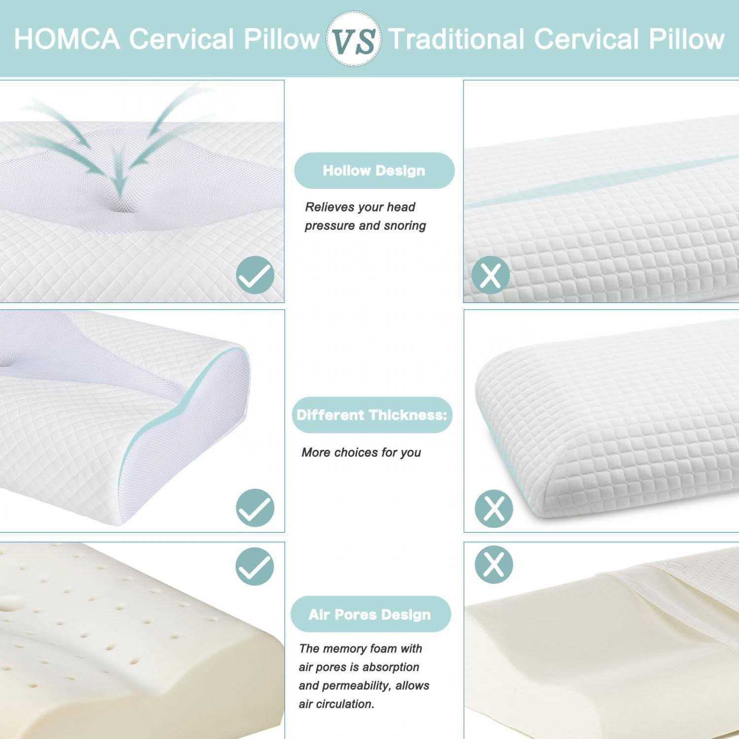 HOMCA high-quality memory foam neck pillow with different thicknesses can relieve neck and shoulder pain and comfort, Have a wonderful night, and make yourself more energic the next day. The HOMCA orthopedic pillow has a delicate and soft texture, not wool or pilling. Washable and breathable pillowcase, machine washable.The pillow weighs 3.08 pounds and is white in color. All materials are chemical-free for better health advanced rebound memory foam pillow is made of pure memory foam, which is comfortable and soft. Low allergy rayon/polyester proprietary hybrid pillowcase feels silky and soft. A slow rebound pressure pillow is comfortable, providing better air circulation and keeping you cool.