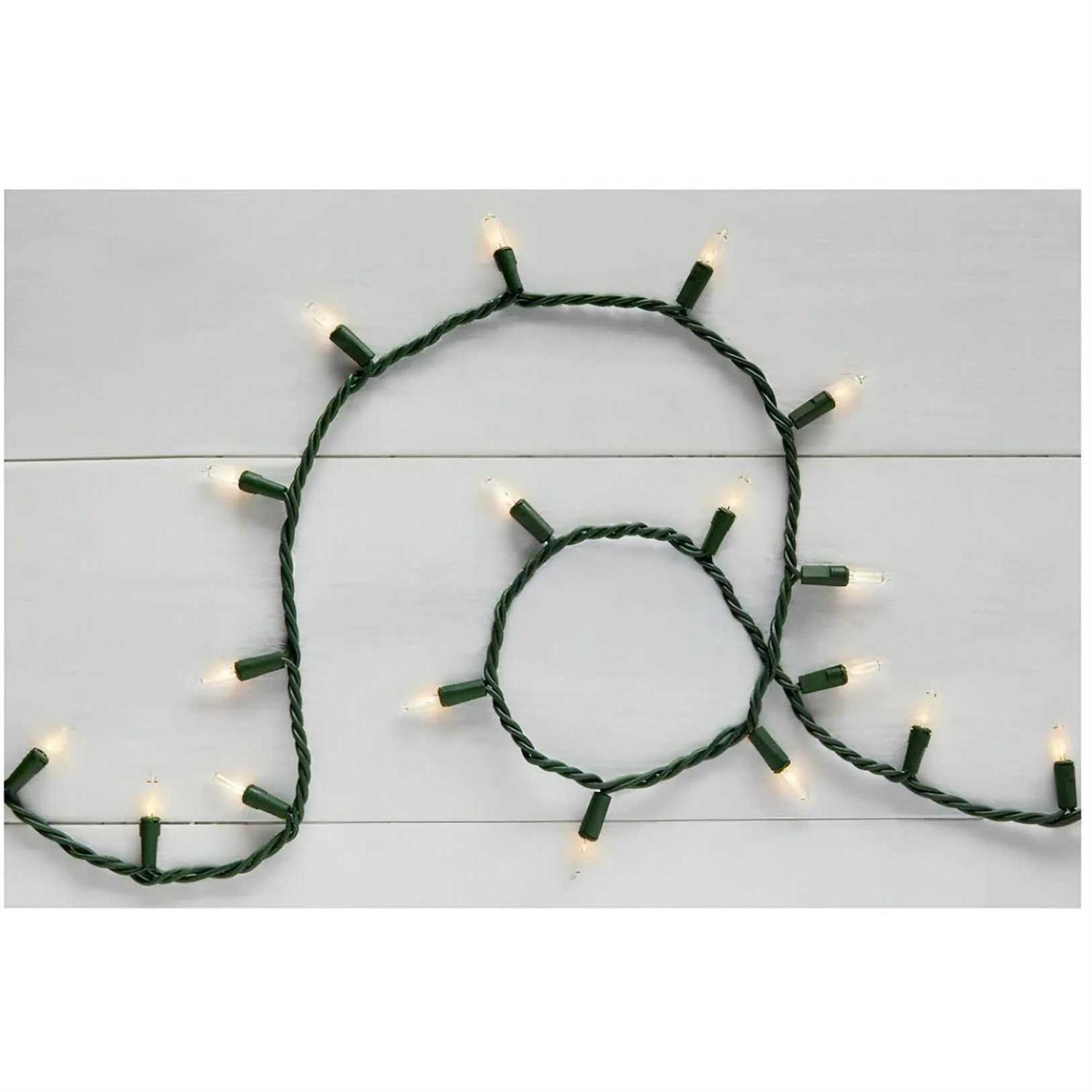 Create a dazzling display with these 100 mini incandescent white lights. The green string color blends smoothly with Christmas trees and shrubbery for uniformity, while the end-to-end functionality lets you connect up to five interconnected light strings on one outlet to set a festive mood. A durable design allows both indoor and outdoor use for versatility. These 100 mini incandescent white lights come with four spare bulbs and two fuses for quick replacement, keeping the celebrations going.