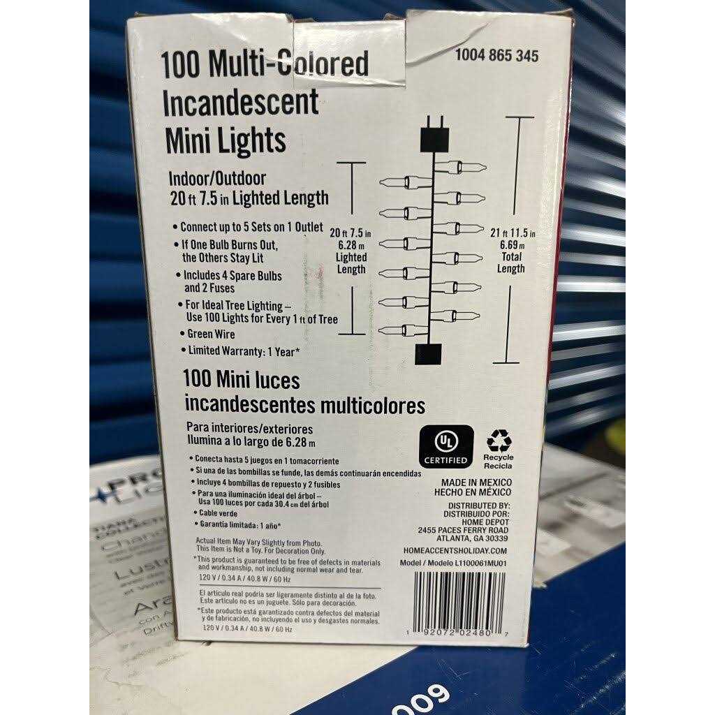 Light up your Christmas Eve with this 100-light multicolor mini incandescent light string. Sparkling light in a range of brilliant colors illuminates your tree or home, bringing warm holiday cheer to your yuletide gatherings. The 22-foot green string is easy to hide among the branches of your tree, and the 20.6 feet of light coverage ensures there are no bare spots. With extra bulbs and fuses included, this multicolor mini incandescent light string offers years of use in your holiday decorating.