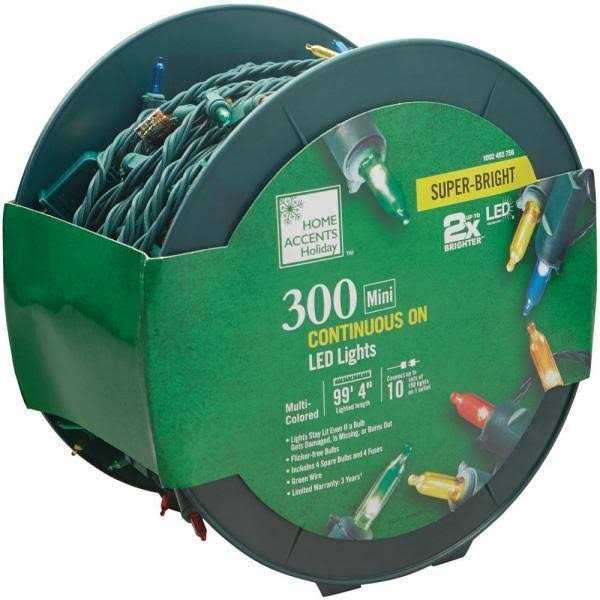 Make holiday gatherings and Christmas festivities extra special with this 86.92-foot mini LED super-bright multi-reel light set. Featuring two reels with 150 multicolor lightbulbs each, this radiant holiday accent ramps up the merry and bright. Ultra-efficient and long-lasting LEDs stay cool to the touch, letting you enjoy a safe, hassle-free holiday. Use the extra bulbs that come with the set to quickly replace burned-out lights. Easy to extend, this mini LED super-bright multi-reel light set connects with similar light strands for a longer reach.