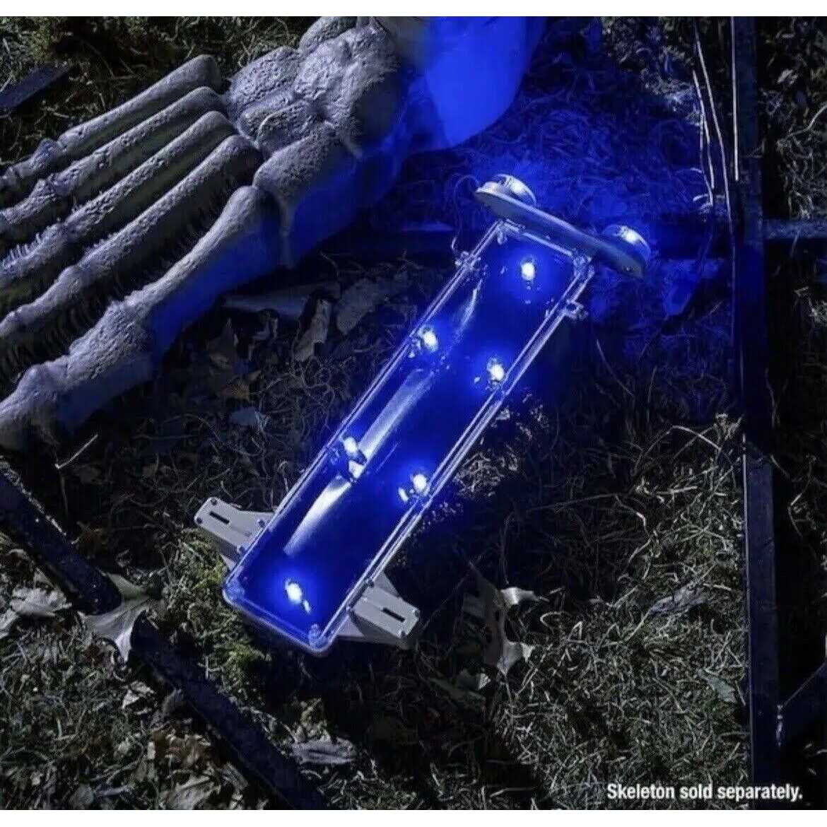 The Home Accents Holiday 12 Ft Skeleton Lighting Kit from The Home Depot. Take your 12 Ft Giant Skeleton to the next level with this lighting kit. Select any color that matches best with your Halloween display or set the light kit to color changing for an ever-changing look. Since the lighting kit plugs directly into the Skeleton’s existing cable system, set up is a breeze! Perfect for Halloween or other spooky events!