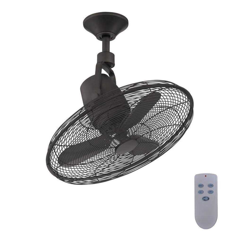 Indoor/Outdoor Natural Iron Oscillating Ceiling Fan with remote control has a caged fan design and is great when air circulation needs to be directed or if space is tight. It also has an oscillating feature that sways back and forth creating a nice breeze. Both fan speed and oscillation can be control by the handy remote control. This fan is also rated for damp locations so it can be used under covered outdoor locations.