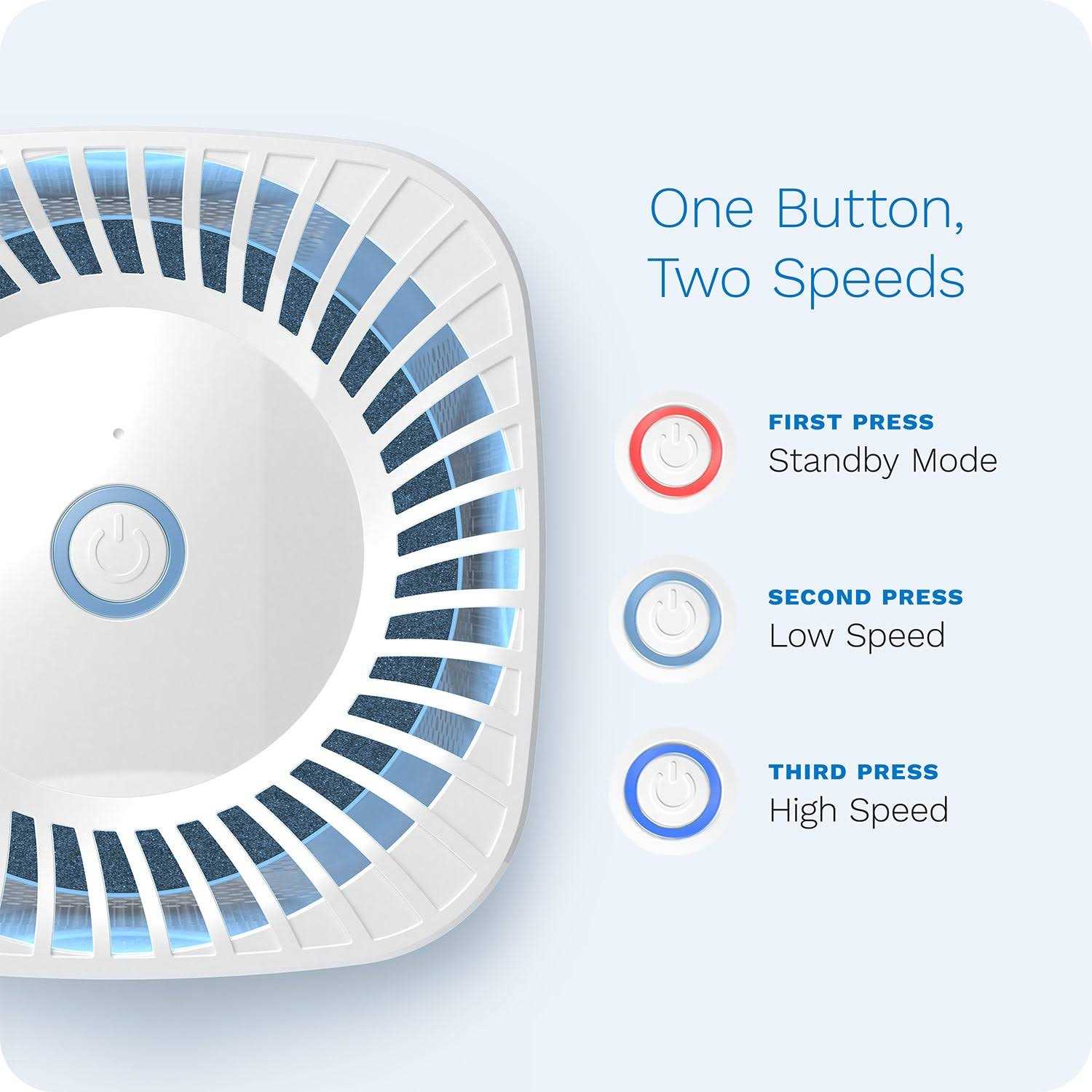 Our hOmeLabs personal air purifier has a filter with 99.97% efficiency rating that quietly purifies and ionizes indoor air to reduce odors and particles. Our rigorous, 4-stage filtering process includes a pre-filter to capture large particles, a HEPA filter with an ion booster to catch additional air adulterants and help you breathe more easily Bye-bye bad smells! This air purifieru2019s ionizer helps to eliminate unwanted odors from sources like pets and smoking. Then releases negative ions to thoroughly purify the surrounding air. Measures 6.7 x 6.7 x 7.5 inches for travel size, with up to 40 sq-feet coverage. Has customizable fan settings that allow you to choose the quieter, sleep-friendly u201clowu201d power, or max-freshness u201chighu201d power. With indicator light to tell when itu2019s time to change the filter. With clear instructions on how to use, just plug it in and it works with one simple button. If you need any assistance, you can reach our team of experts via chat, email or phone.