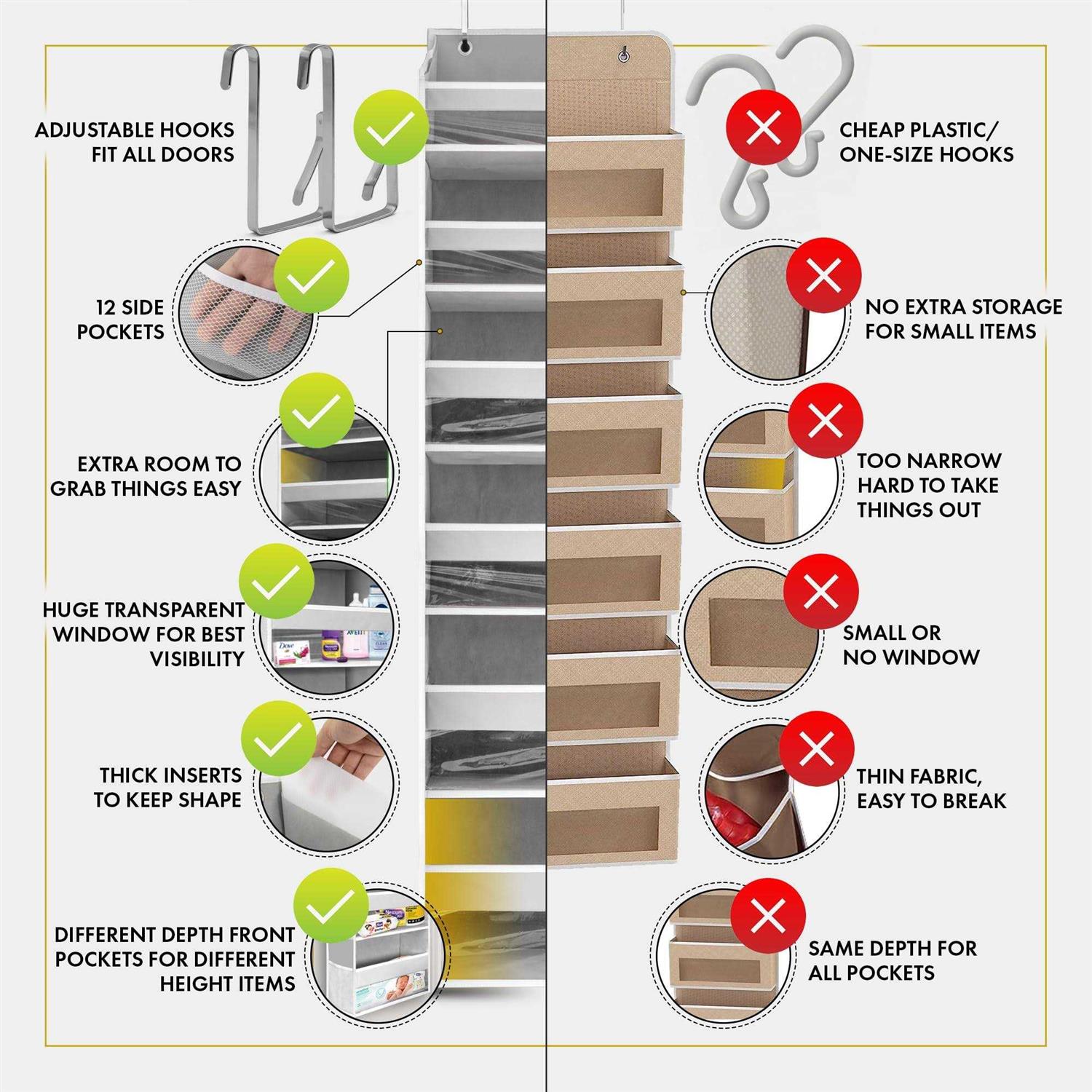 Premium Durable Non-Woven Fabric: Crafted from the highest quality non-woven fabric, Homelux Theory’s Over Door Organizer has exceptional durability and moisture-proof properties, all while maintaining a lightweight, breathable, and luxuriously soft-to-touch feel. Measuring 55″x14″x6.7″, this elegant and minimalist behind the door organizer also works best as a bathroom door organizer and diaper storage organizer making it an absolute newborn baby essentials. Homelux Theory over the door storage organizer comes with 6 pockets with 3 different sizes and depth to fit all kinds of items you need to store. The two top pockets are specifically designed to be shallower so that the items stored can be easily reached. 12 Extra Mesh Side Storage: With our back of door storage, there’s no such thing as too much storage space! Our behind the door storage solution goes above and beyond with 12 additional mesh pockets, perfect for storing small items such as your phone chargers, keys, thermometers, remote control, and many more. These over door organizers and storage not only provides ample space but also prevents mix-ups allowing you to retrieve and locate your belongings easily. Heavy Weight Capacity: Homelux Theory’s back of the door organizer is constructed with tough and durable materials that can reliably hold up to an impressive 50 lbs! This sturdy hanging storage organizer makes the ideal back door organizer storage solution for a multitude of items, providing a space-saving organizational haven within your home. With our hanging closet organizer, you can now say goodbye to clutter and hello to a seamlessly organized living space. No More Tilting: Thoughtfully crafted, our door hanging organizer is specifically designed to accommodate items of varying sizes and heavy items. The precisely stitched design between the side pockets enhances sturdiness and effectively prevents any tilting or swaying of the over the door nursery organizer. Say goodbye to concerns about items falling, as our innovative design and superior craftsmanship in the over the door clothes organizer ensures a stable and secure storage solution. wall hanging storage, over the door closet organizer, hanging diaper organizer, over the door organizer bedroom, over door bathroom organizer, over the door hanging organizer, diaper organizer hanging, over the door makeup organizer, over the door laundry organizer, closet door storage, door hanging storage, toy storage, bedroom storage, bedroom organization, baby clothes organizer, back of door organizer, nursery storage, behind door storage, baby organizer, over door storage, diaper organizer, nursery organization, storage for bedroom, pantry door organizers and storage, wall storage organizer, nursery organizers and storage, storage solutions for small spaces, camper storage, wall organizers and storage, kids toy storage organizer, wall storage, room storage, closet hanging organizer, kids toy storage, towel organizer, over door pantry organizer, towel storage for small bathroom, clothes organizer for closet, hanging closet shelves, nursery decor for girls, bedroom organizer, room organizer, bathroom organizers and shelf, storage for toys, kids toy organizer, organization and storage closet, weekly clothes organizer for kids, over the door towel holder, hanging shelves for closet, closet hanging shelves, space saver, organizador de panales para bebe, kids organizer, organizador para bano, hanging clothes storage, craft room storage, accesorios para bebes recien nacidos, space saving, behind door shoe organizer, underwear storage, nursery closet organizer, puertas para closet de cuarto, accesorios para bebe, diaper holder, kids organization, utility closet organizer, door hanging shoe organizer, small space storage solutions, baby room organizers and storage, over the door organizer pantry, diaper holder organizer, bathroom hanging organizer, kitchen door organizer, storage for small bedroom, space savers organizers, almacenamiento y organizacion, closet hanging storage, baby organizers and storage, baby closet organizer, baby storage organizer