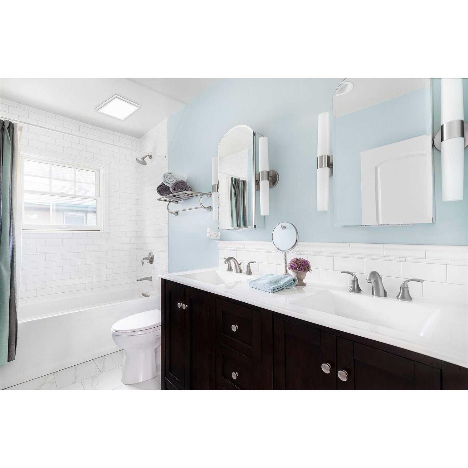 Homewerks ventilation fans look great throughout the home. The sleek design of this Homewerks exhaust fan with LED light takes this bath fan to a new level. Don’t like the look of the average bath fan? Homewerks ventilation fan is designed to look more like a decorative light. It includes an integrated, long lasting LED light that delivers 4000K CCT cool white color temperature with 1000 lumens, which will provide the ideal brightness for any room. An added bonus is that the light can be dimmed when connected to a dimmer switch. The light is long lasting with a 30,000 hours LED life span. The fan provides a powerful airflow for a healthier home with 110 CFM and works best for rooms up to 110 square feet. 2.0 sones is quiet, so the fan provides the same sound level as a soft conversation. This exhaust fan has a standard fan housing, which makes installation easier because generally no cutting or attic access is required to install. Not just limited to a bathroom, this fan can be installed in a laundry room, exercise room, or anywhere in the home where humid air needs to be exhausted. Brighten up your home with this 110 CFM dimmable LED exhaust fan from Homewerks.