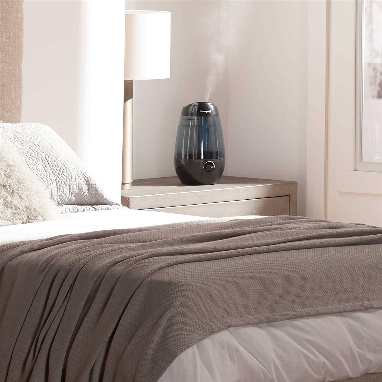 Description Keep an area up to 350 sq. ft. moist and comfortable with this Honeywell HUL535B ultrasonic humidifier, which features variable settings and a multidirectional mist nozzle to deliver soothing, visible cool mist. Features Humidifies up to 350 sq. ft. So you can enjoy soothing, visible cool mist. The unit also does not require a filter. 4-quart reservoir Outputs up to 6 quarts of water vapor per day. Runs up to 24 hours before needing to be refilled. Variable settings Allow you to adjust the output. Multidirectional mist nozzle Helps ensure optimal coverage. Automatic shutoff Turns the unit off when it’s empty. Ultraquiet operation Maintains a peaceful environment.