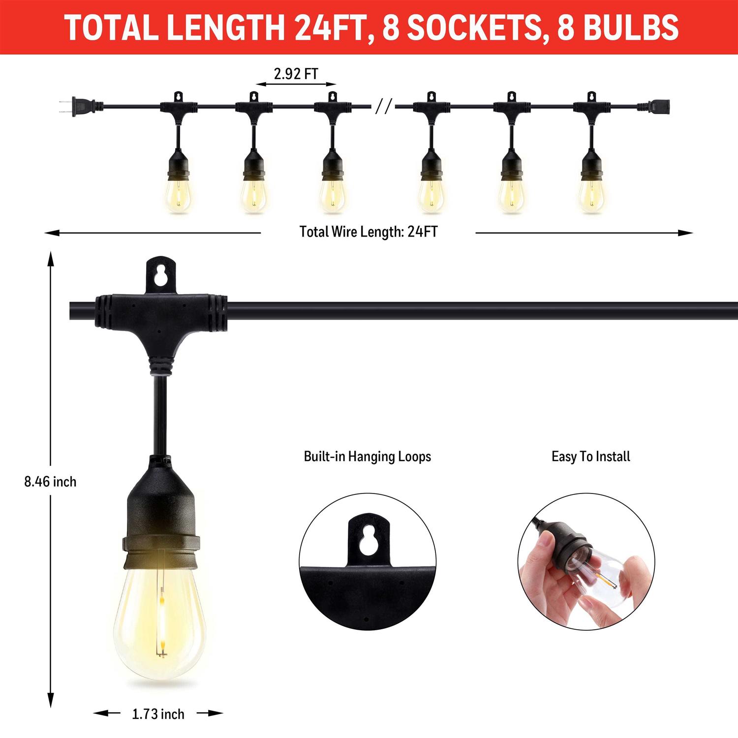 Plug-In LED String Lights are attractive, durable and weatherproof and ideal for patios, porches, walkways, restaurants and more. The LED bulbs produce a warm white light that will enhance any desired area and event. Plug-In LED String Lights are easy to install, allowing you to hang them for permanent or temporary display. Mounting hardware is not included, so you can choose to use a hammer and nails or a less permanent option if you’re using them for a special occasion. Not only are The Honeywell 24 ft. Plug-In LED String Lights effortless to install, but an eco-friendly option as well. They plug into a power source and have been shown to reduce energy usage compared to other string lighting significantly. These LED party lights are sure to reduce your overall energy usage and you will be surprised at how efficiently they operate, especially considering the ambiance and quality of the light they provide. The filament bulbs are impact-resistant and provide a robust 30 Lumens per bulb. Plug-In LED String Lights are designed to blend in with any home style, whether modern or traditional. Transform your patio and turn your backyard into an oasis with our LED string lights.