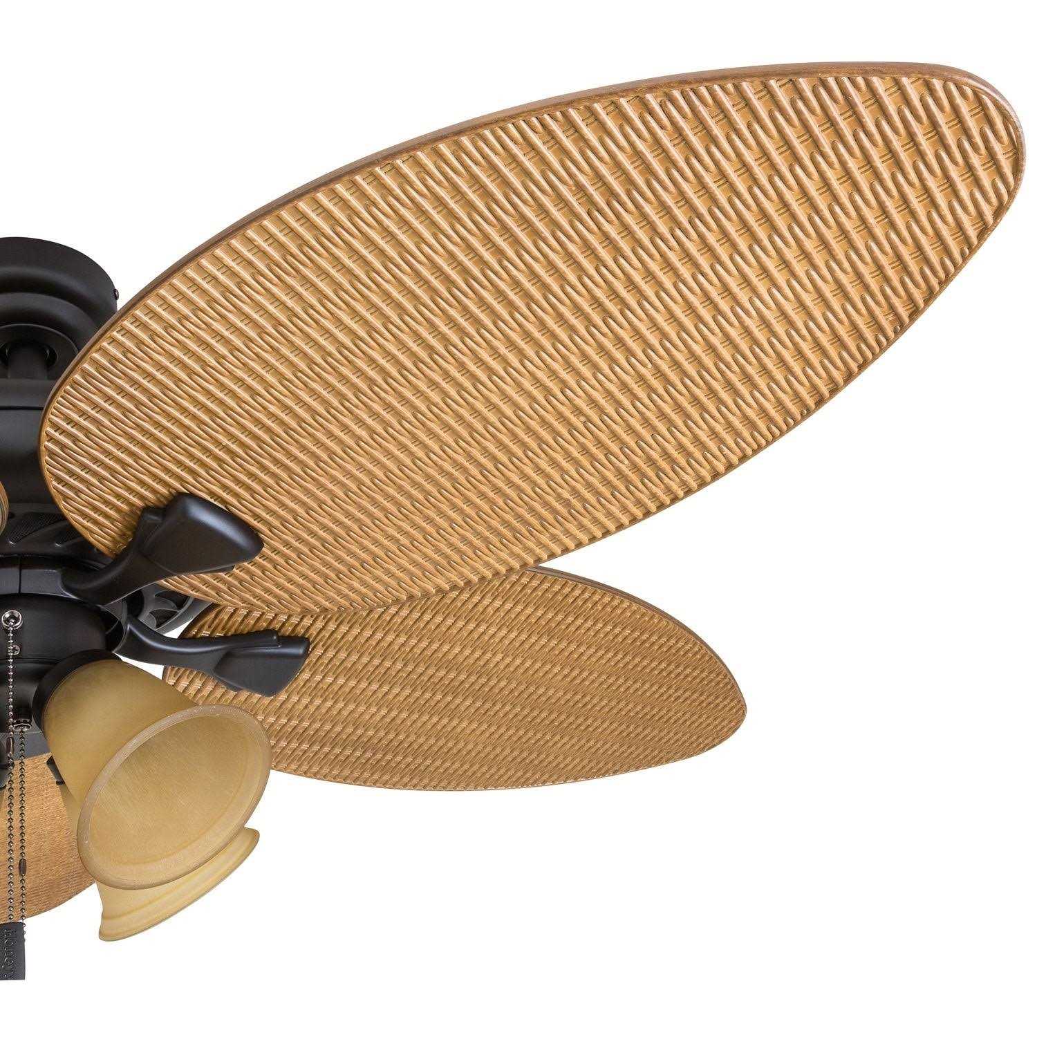 Honeywell ceiling fans make your indoor and outdoor areas comfortable during the stifling summer weather. Enjoy a welcome breeze in your living room or on your porch while making the area look stylish. This tropical multi-position indoor or outdoor ceiling fan provides a truly inspiring fixture for your home. The Honeywell palm valley features a 4 armed branched light with glass shades. The innovative 5-blade design provides ultra-efficient, adjustable, and energy-efficient airflow while the led lights provide ideal lighting for the area. Control your ceiling fan with the traditional pull chain. Enjoy year-round comfort by adjusting the reversible airflow switch that easily allows you to change the direction of the fan to properly distribute air. During hot summer months it will provide a cooling effect or when reversed, spread warm air in the winter to help reduce energy costs. Honeywell ceiling fans feature a collection of fans in various sizes and specifications to ensure your choice of indoor or outdoor fan delivers optimum performance for your room’s size. You can trust the quality of Honeywell ceiling fans to deliver maximum airflow and a stylish lighting option.