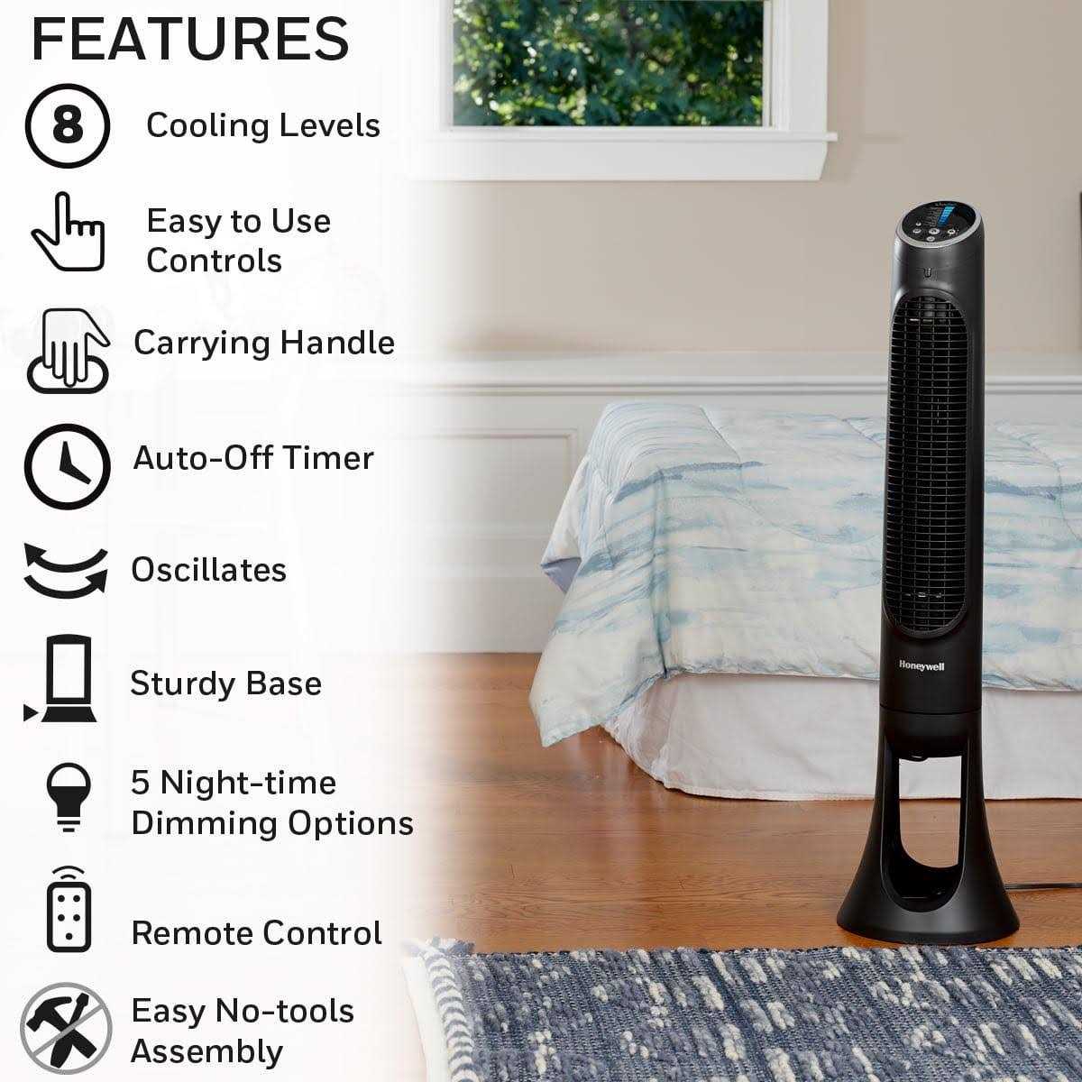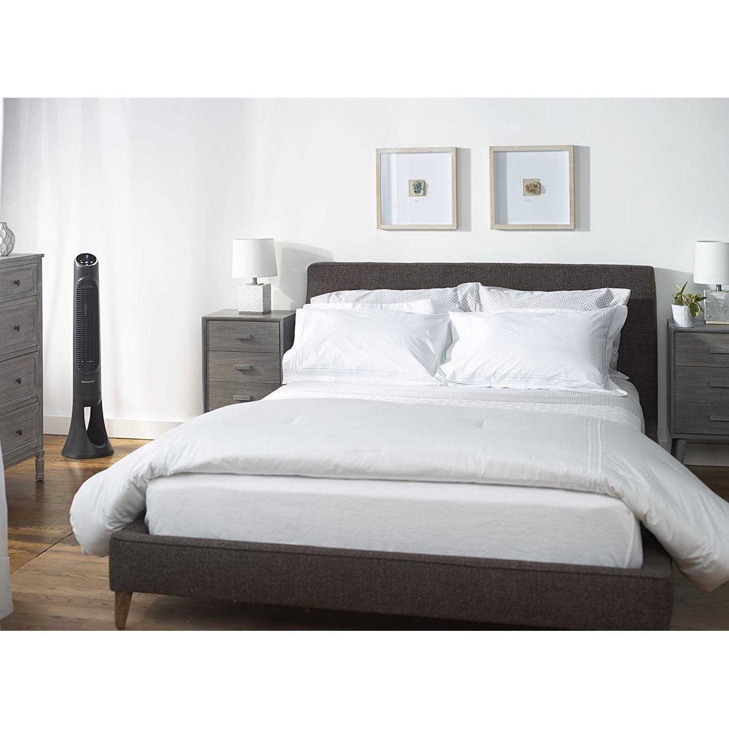 The Honeywell QuietSet Tower Fan features five speeds that are customizable and range from sleep to power cool settings. The lights on the control panel automatically dim after 15 seconds, making it ideal for nighttime use as well. This slim tower fan has touch-button electronic controls that are easy to use. A remote-control nest has also been included. The slim design of this unit is convenient because it does not take up too much space. The oscillating tower fan has a sturdy and durable base that is easy to setup, requiring no tools. Combining the very best aspects of strength and silence, the Honeywell QuietSet Whole Room Tower Fan can produce whole room cooling for any number of medium to large sized rooms. This whole room fan includes QuietSet speeds that range from sleep to power cool (5 speeds in total). These speeds can be accessed via Easy Touch Controls on a control panel that automatically dims after 15 seconds of use. The sum of these two features allows for seamless nighttime operation. The slim design of this tower fan paired with its black finish opens a wealth of installation settings. The Honeywell QuietSet Whole Room Tower Fan’s inclusion of 5 speed settings and accessibility via touch controls (remote control included) make it a natural addition for any number of rooms in the home setting.