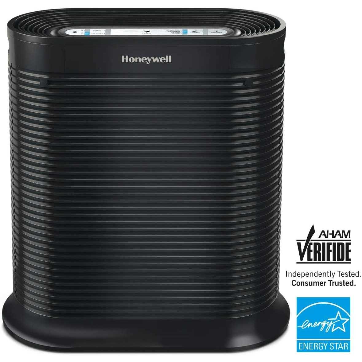 The Honeywell True HEPA Allergen Remover is sleek, energy efficient and effective. Its True HEPA filter helps to capture up to 99.9% of airborne allergens, such as mold spores, smoke, dust, pollen, and bacteria from the air that passes through the filter. It features an automatic shut-off timer and 4 cleaning levels, including germ, allergen, and turbo cleaning power options.