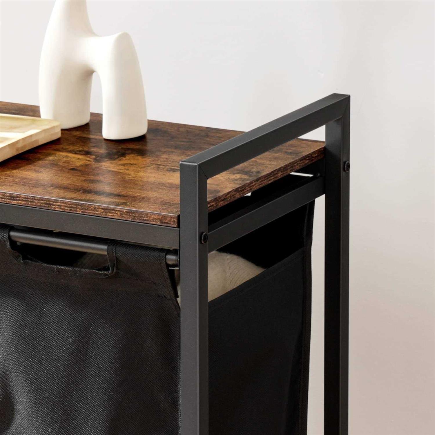 Solid Hamper: Premium particleboard and 18mm thickened iron frame work together to provide long-lasting durability. The well-made structure makes the laundry basket easily hold heavy clothes Large Storage Space: The size of the laundry sorter: 43.5″L x 13″W x 29.3″H; Help you sort your clothes by color and material, keeping your clothes neatly organized and saving your time Attentive Design: The top shelf keeps detergent and fabric softener handily. Oxford cloth pockets can hold small accessories such as socks and intimate clothing, making laundry work easier. The bottom rail holds the removable laundry bag securely, and you can gently pull or lift the bag to remove it Smooth to Move: 4 casters let the laundry sorter move freely, and you can easily push it from the bedroom to the laundry room; 2 lockable wheels help to place the laundry basket wherever you need it. The heavy duty rubber material ensures that the wheels won’t scratch the floor or make any noise Assembly is Not a Headache: Our packaging comes with detailed instructions, you can easily complete the assembly by following the detailed steps Sort clothes with the 4 section laundry hamper. Make your laundry day easier! Pull out the Oxford fabric bags, open the velcro and you can remove the laundry bags. Bottom rail bar provides extra support – laundry bag won’t sag when full.