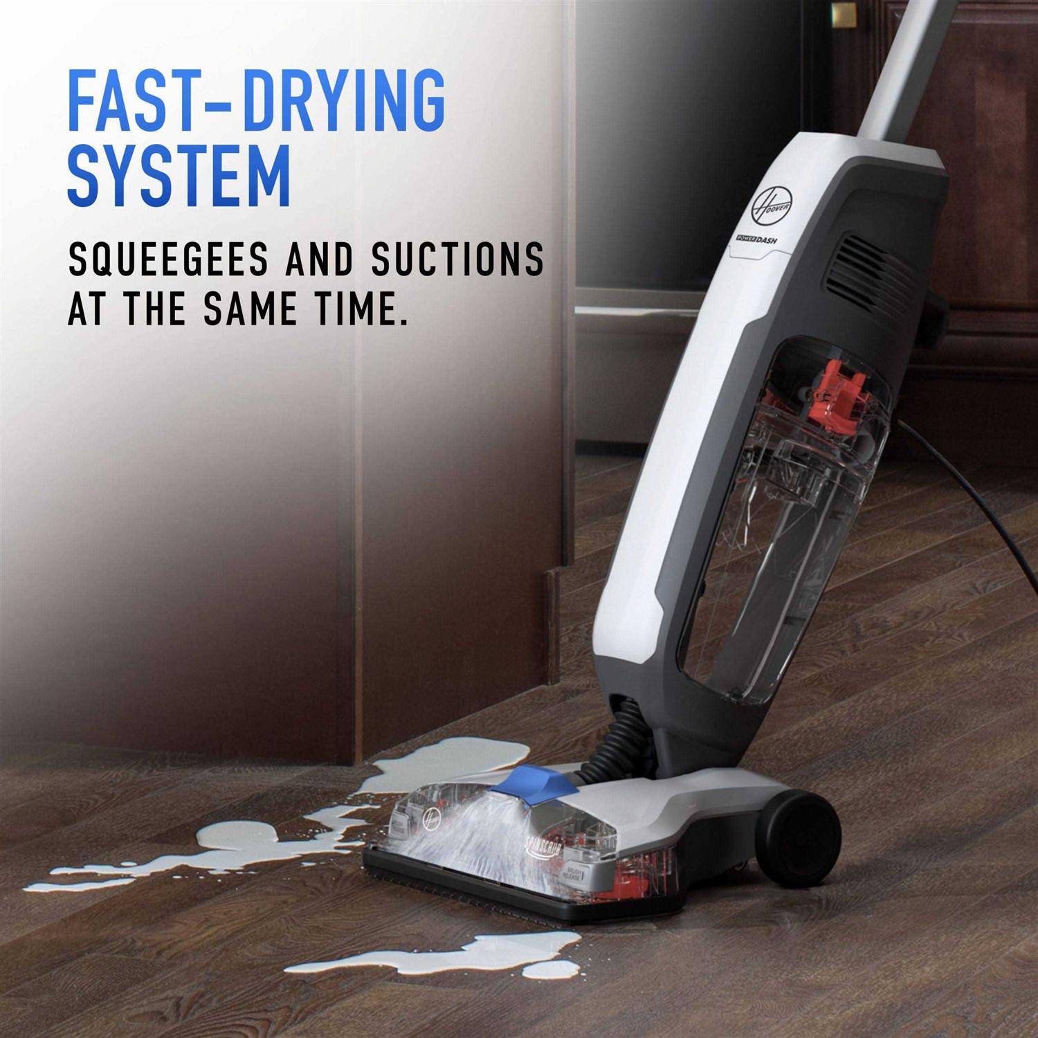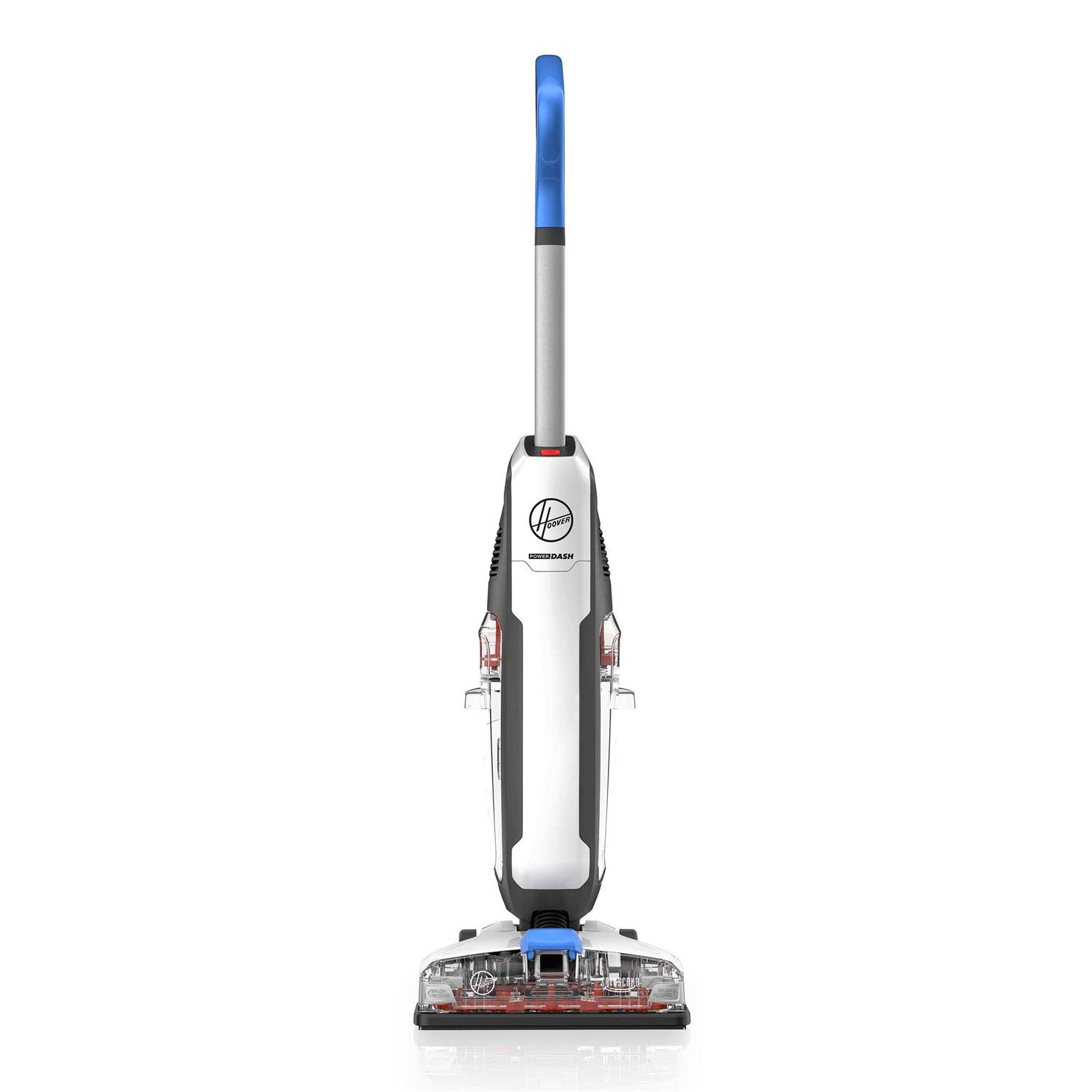 The Hoover PowerDash Hard Floor Cleaner takes the dirty work out of hard floor cleaning. Antimicrobial SpinScrub brushes loosen tough messes to safely clean sealed hard floors. Then, the fast-drying system squeegees and suctions at the same time. No-work scrubbing safely cleans sealed hard floors and tackles tough messes with ease. Fast-drying system squeegees and suctions floors so you don’t have to wait around for them to air dry. Antimicrobial SpinScrub Brushes clean grooves, grout and textured floors.