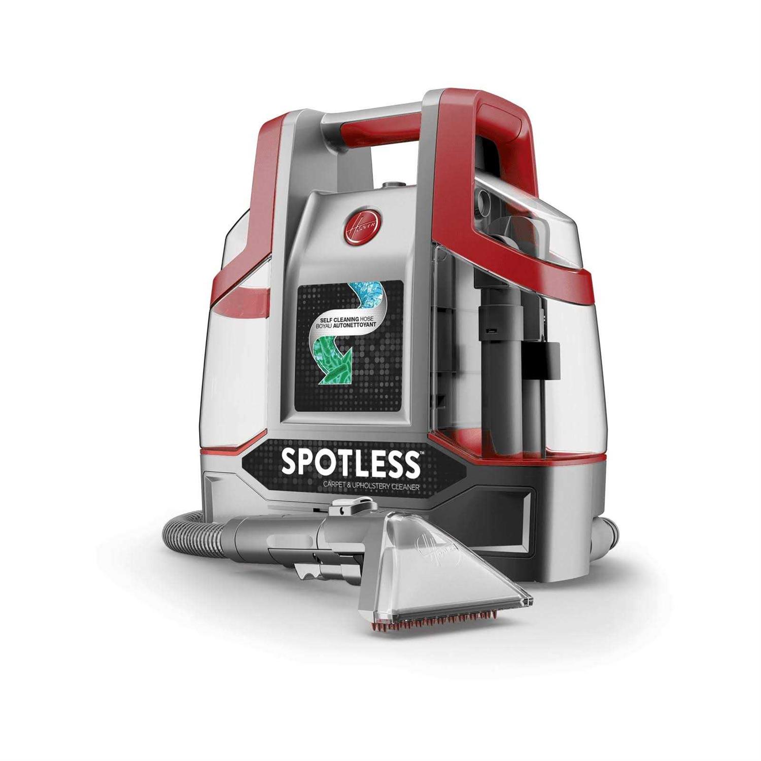 Maintain a neat and tidy environment within the home with the Hoover Spotless Portable Carpet and Upholstery Cleaner, model FH11300PC. It quickly and effectively tackles a wide variety of messes on your floors and furniture. Thanks to this portable carpet cleaner, there is no need to worry about spills, muddy shoes and pet stains anymore. It easily lifts and removes spots by combining powerful suction and hygienic deep cleansing tools with the added power of strong detergents. This lightweight carpet cleaner has patent-pending Self-Clean Technology that flushes the hose after each use to help prevent odors and bacteria growth. It provides a spotless result inside and out.