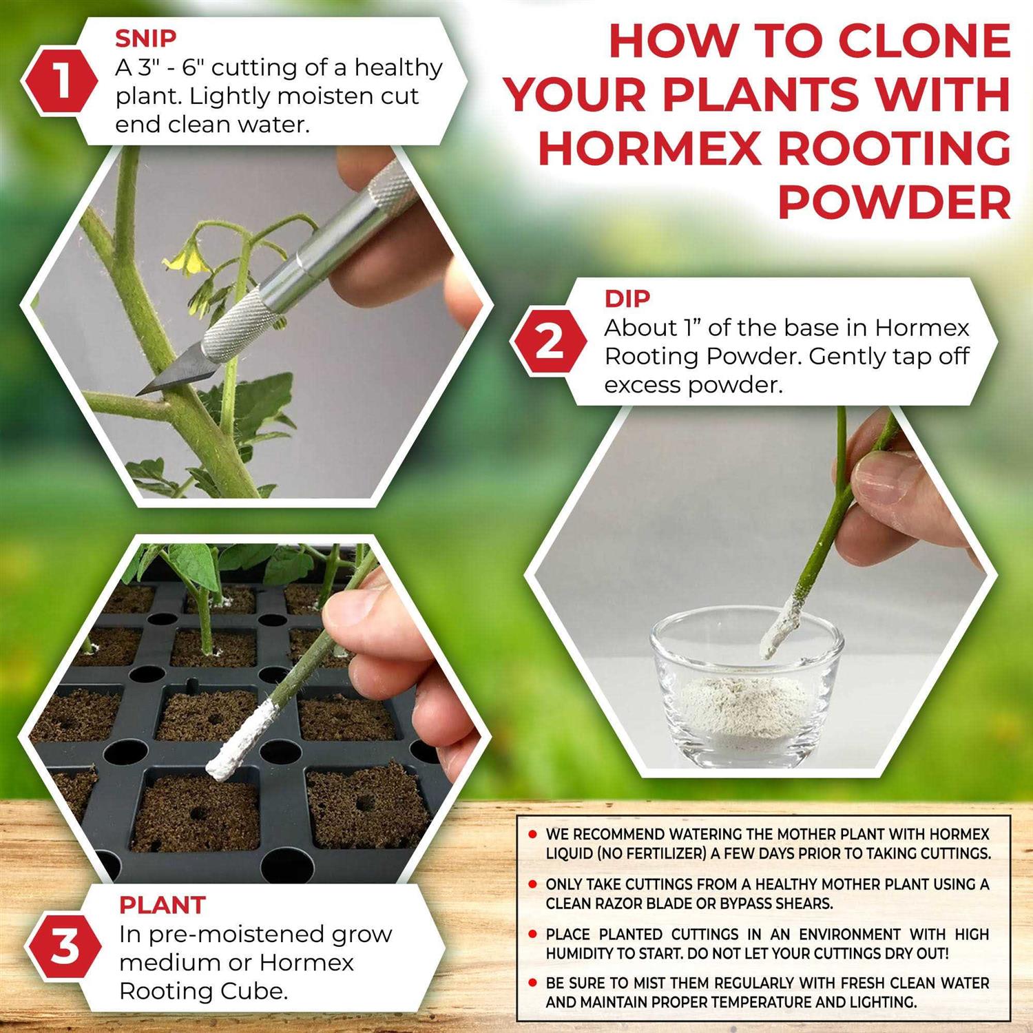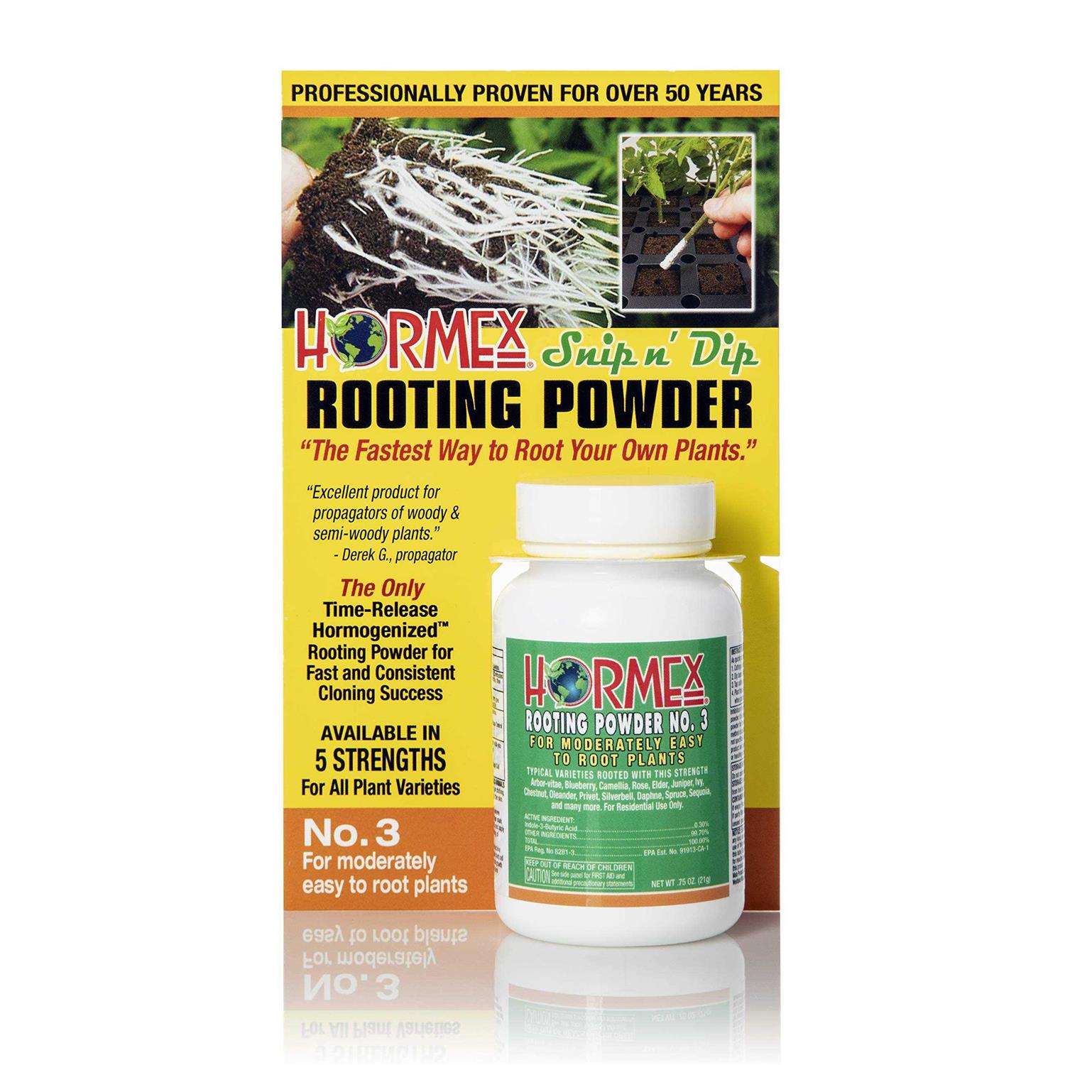 Hormex Rooting Powdered rooting compound is economical and effective. The fastest way to start new plants from cuttings. Encourages quick root development faster and healthier growth of new roots from cuttings. Grows new African violets, roses, poinsettias, geraniums and most other popular home, garden and greenhouse varieties.