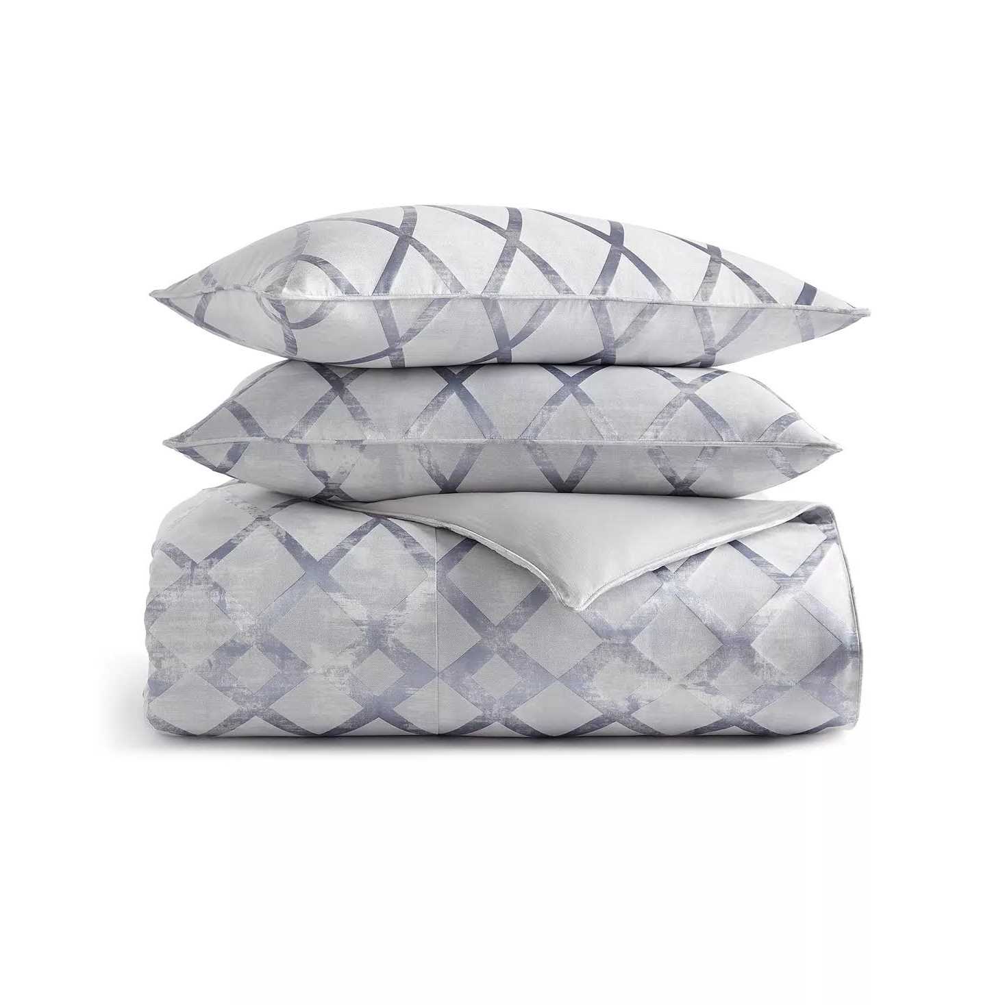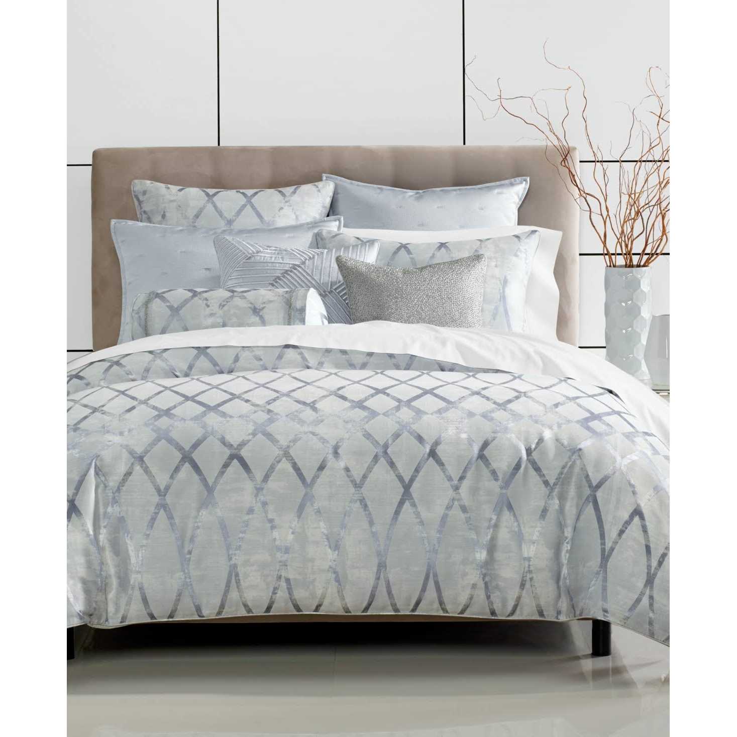 Bring calm and relaxation to any bedroom with the Dimensional duvet cover set from Hotel Collection, featuring a dreamy blue ground and metallic accents. Style Keywords: Neutral,Geometric,Light,Set,Cotton,Contemporary,Viscose,Duvet Cover,Polyester,Sham,Zipper,King