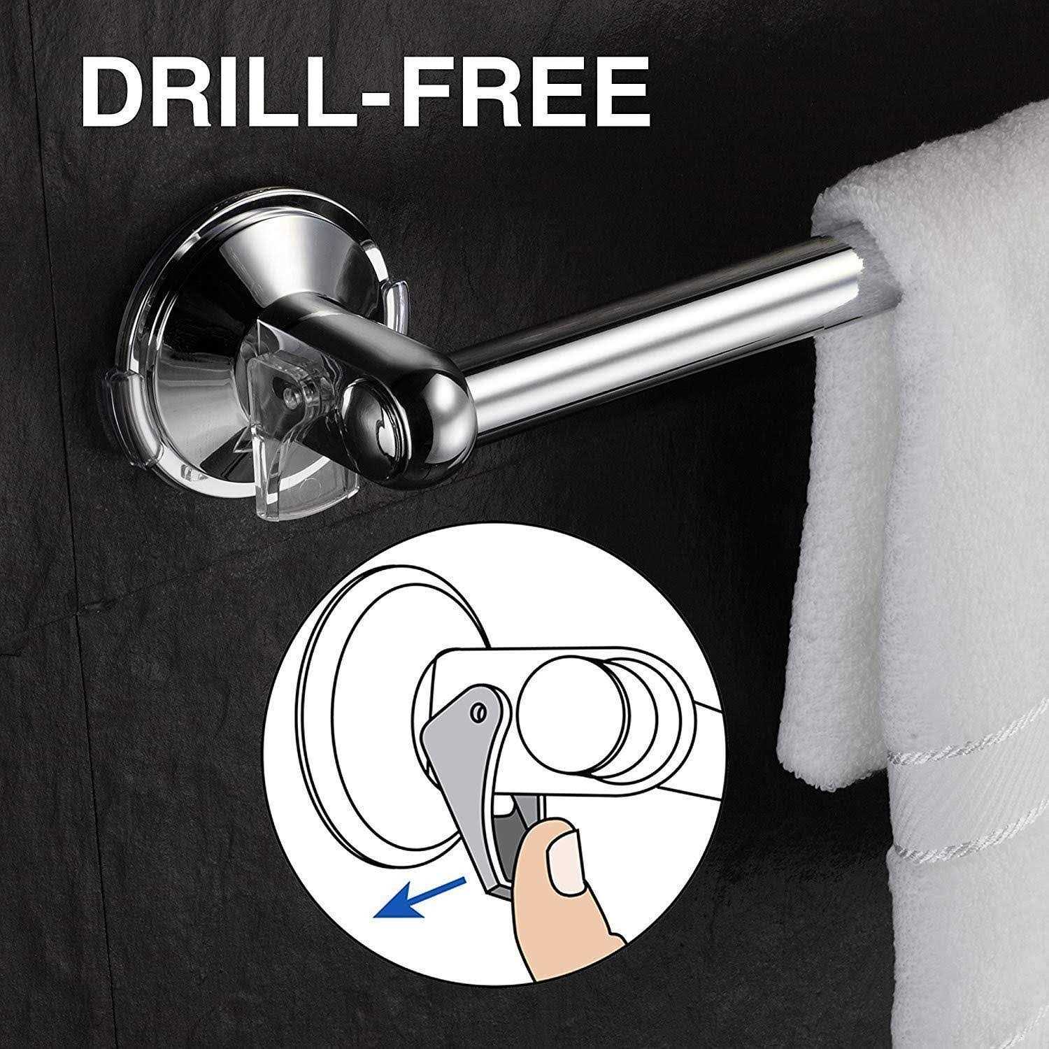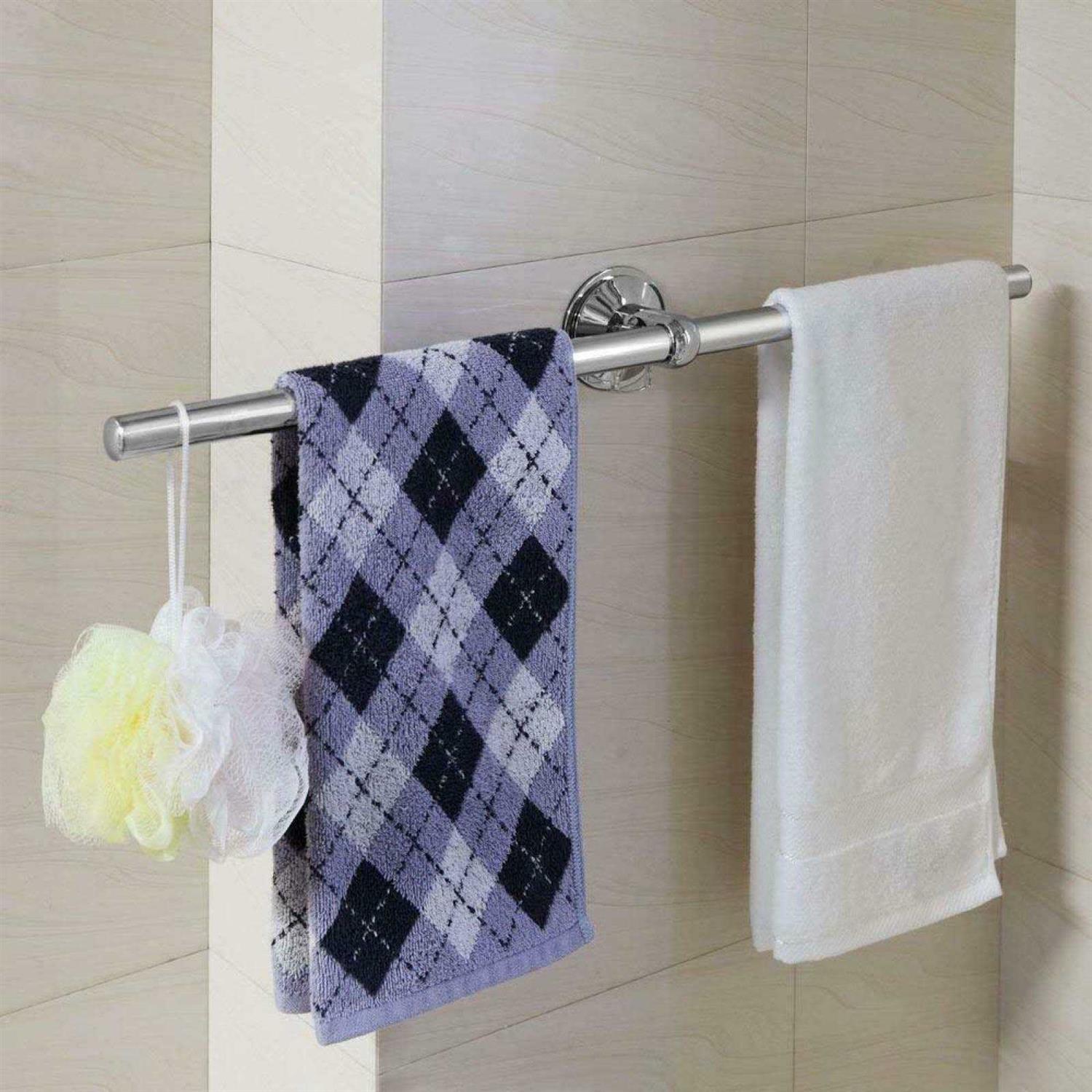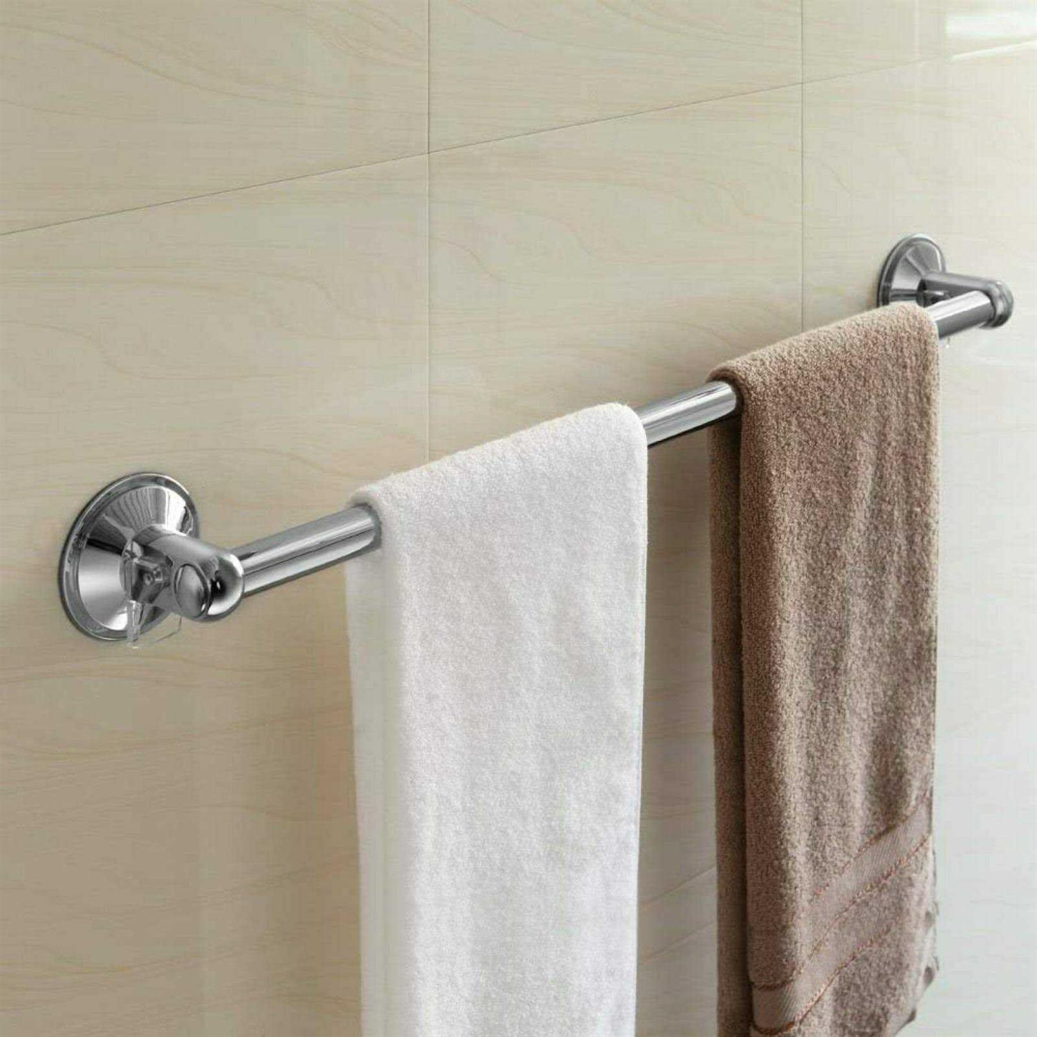 Simple Temporary Storage Solution For Guest Towels. Use In Bathroom, Kitchen, Laundry Room, Patio Patented 90-degree Push Lock Design For Superior Grip. Reposition At Any Time Or Remove For Easy Cleaning 18 Inch Towel Bar Mounts Instantly On All Smooth Or Textured Surfaces Without Tools, Drilling And Surface Damage. Safe On Ceramic, Stone And Mosaic Tile, Shower Enclosures, Glass Shower Doors, And Mirrors. Dual-mount System For Smooth Or Textured Surfaces. Stainless Steel Towel Bars And High-polish Chrome-finish Rings. Adjustable Slide Brackets Allow Mounting On Small Surfaces, Corner Areas. Silicone Adhesive Brackets Easy To Remove Without Damage To Tile Surface.