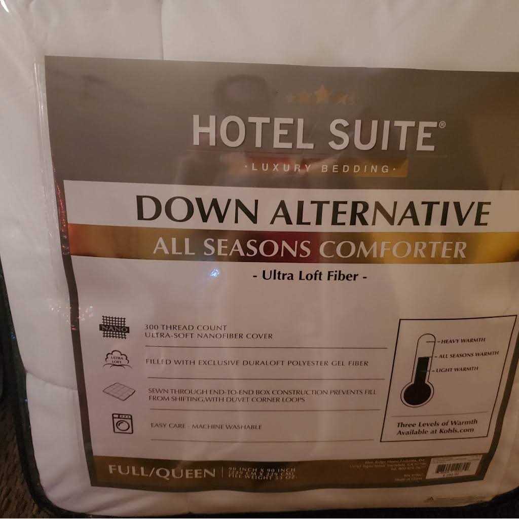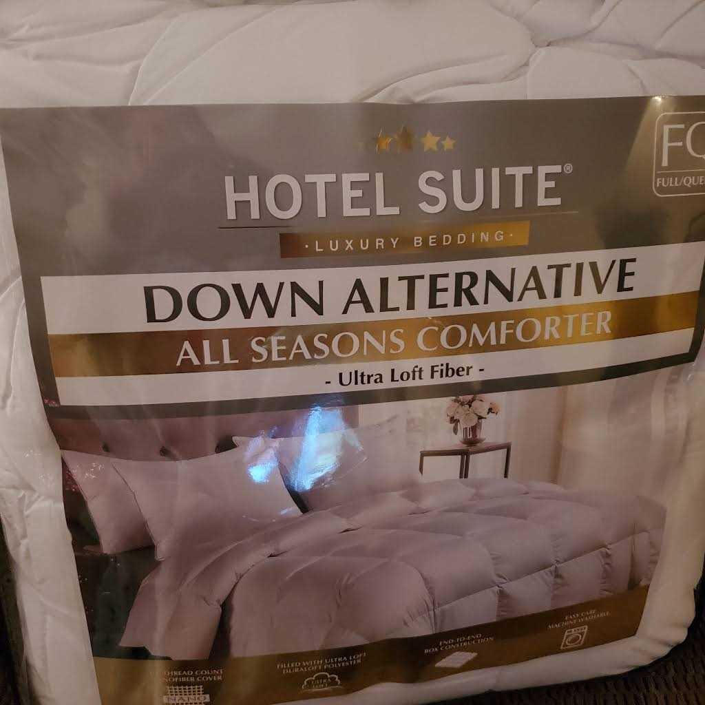 Stay warm all season long with this Hotel Suite down-alternative comforter. Stay warm all season long with this Hotel Suite down-alternative comforter. Watch the product video here. All seasons warmth Includes duvet corner loops Sewn through box…