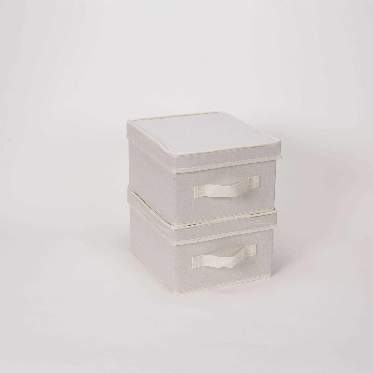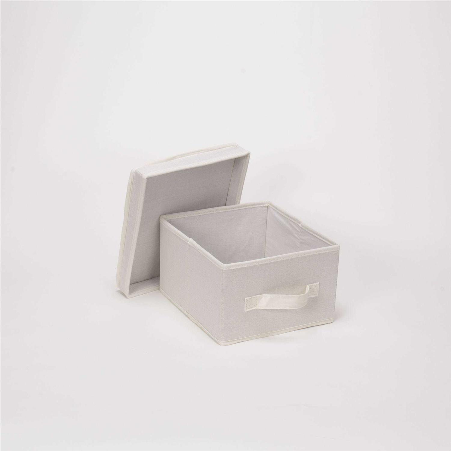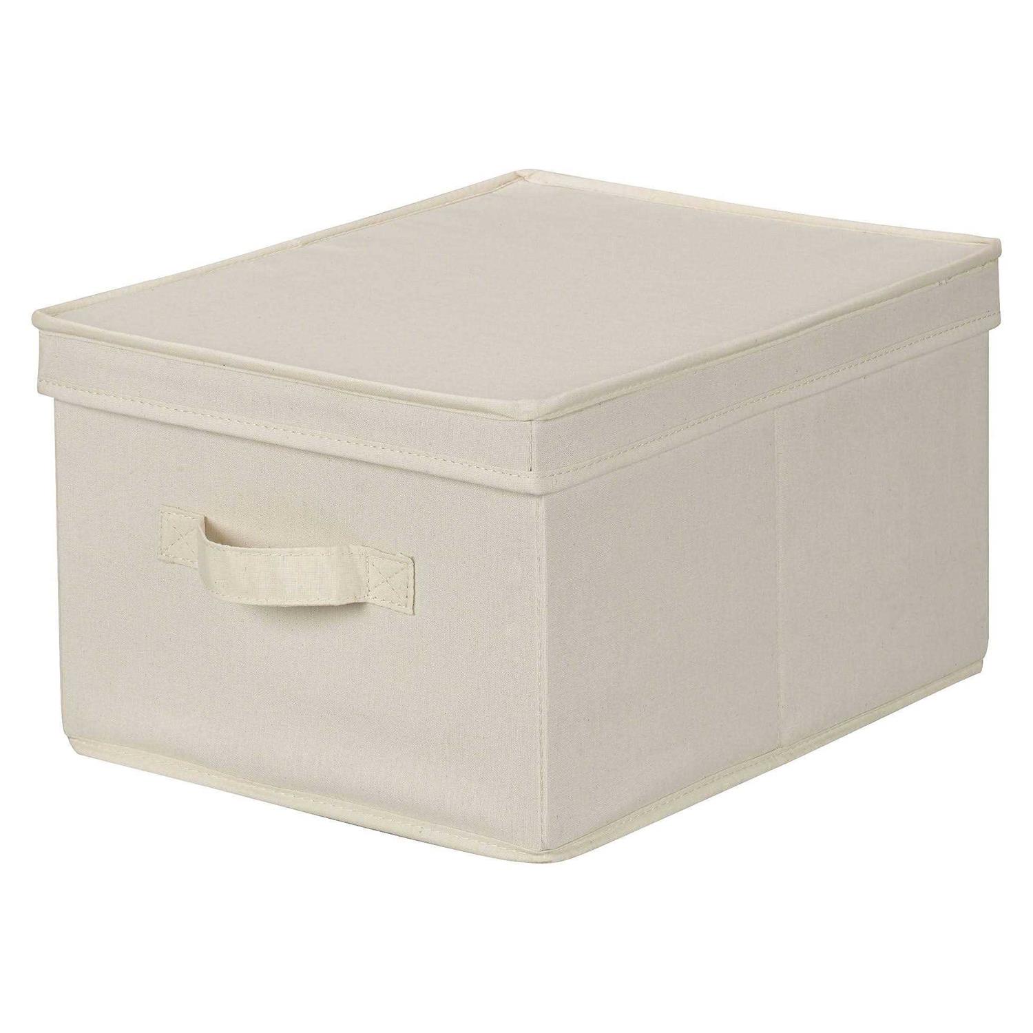 Tuck away clutter, linens, and more with these lidded storage boxes. With the convenient handle and sturdy sides, these lidded boxes are sturdy enough to stack, so you get the most use of every space. The Large box provides a protected place for bulky and oddly shaped items, so nothing is crammed in a closet unprotected. The smooth, durable canvas suits any dTcor and keeps your things stashed safely and neatly. Whether housing seasonal decorations or something else altogether, this convenient storage box will quickly become one of your favorite pieces. Use it home or in the dorm and keep your things clean, tidy, and easily within reach.