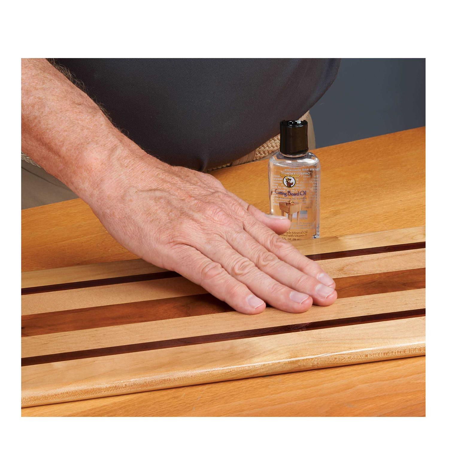Cutting Board Oil made from odourless food-safe mineral oil will help protect your wood chopping boards and wooden kitchen utensils. This is a superb Food Grade Mineral oil, it will not taint your boards, it is completely safe direct or indirect contact with food. Directions for use: For best results apply warm to allow deeper penetration into the wood. Use a clean cloth and apply in the direction of the wood grain. Let it soak for at least 20 mins, wiping off any excess. Buff the wood to a nice sheen. To ” Season” a new cutting surface, apply 3 – 4 coats before using. Note: the 1st coat will absorb more oil than following coats. Once you have seasoned then you can continue the care by using Howard Butcher Block Conditioner.
