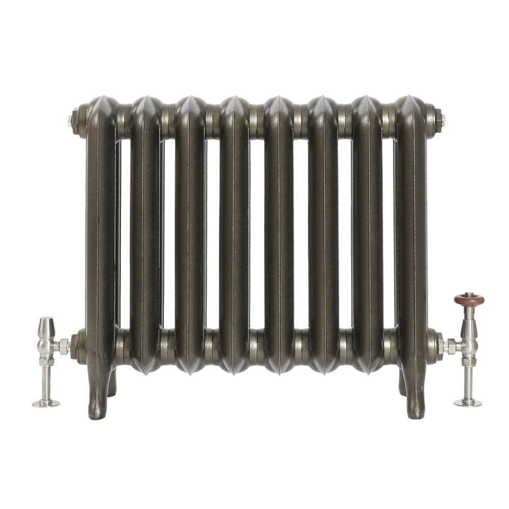 The Erté radiator is available in a range of widths to ensure a perfect fit for your space – just make your selection from the options above. – Crafted to the highest standards from cast iron, this strong and durable radiator features a classic column design and an antique brass finish, creating a look that endure the test of time. It also boasts an impressive heat output, ensuring your room feel warm and snug in no time. – Erté Cast Iron Radiator Features:Available in a range of widths – H 22.05” x D 7.28”Assembled to order – Cast iron construction for outstanding strength and durability – Boasts high heat output – High quality Antique Brass finish – Features an oval column design – Fitted with pointed cast iron feet – Hand tightened bush ends/caps – allows choice of connection style – Tested to meet EN442 certification standards – CE marked – Measurements do not include valve dimensions10 Year Guarantee – Please Note:Our radiators are designed for forced circulation closed loop systems only. They are not compatible with open loop, gravity hot water or steam systems – Refer to the ‘Guides’ tab for details of each size variation, including heat output and weight – All dimensions are approximate. – The featured image is representative of one style and size of appliance – the number of individual sections will vary according to the width of radiator selected – Full details of all available dimensions and outputs are provided in the line drawings – Radiator valves and wall stay not included but are available to buy separately – All cast iron radiators come with standard chrome blanking plug and the bleeding valve