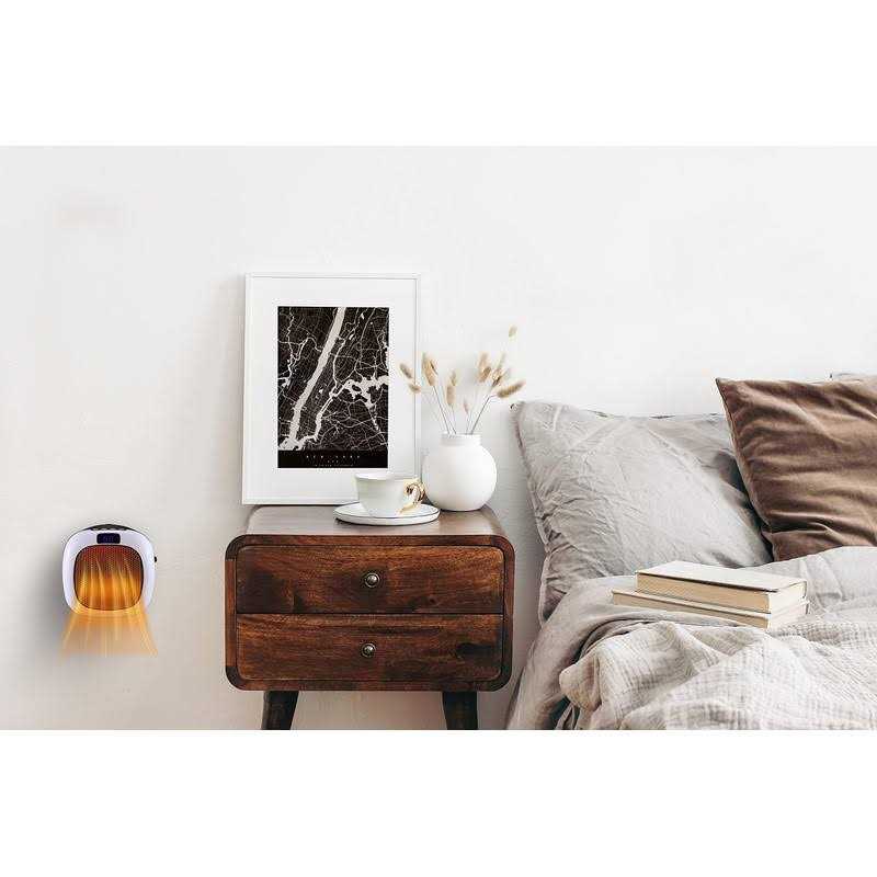 Make any space warm and cozy with Hunter’s – 750-Watt Hunter Wall Mount Space Heater with Remote Control. This small, compact heater is great for home offices and small spaces. The 2 heat settings, digital display, and adjustable thermostat ensures your space stays at your preferred temperature. It even comes with a remote control that can adjust the thermostat from 59°- 86° from the comfort of your chair. Finally, keep peace of mind with our cool touch housing, grill and overheat protection with its 60-second cool down function.