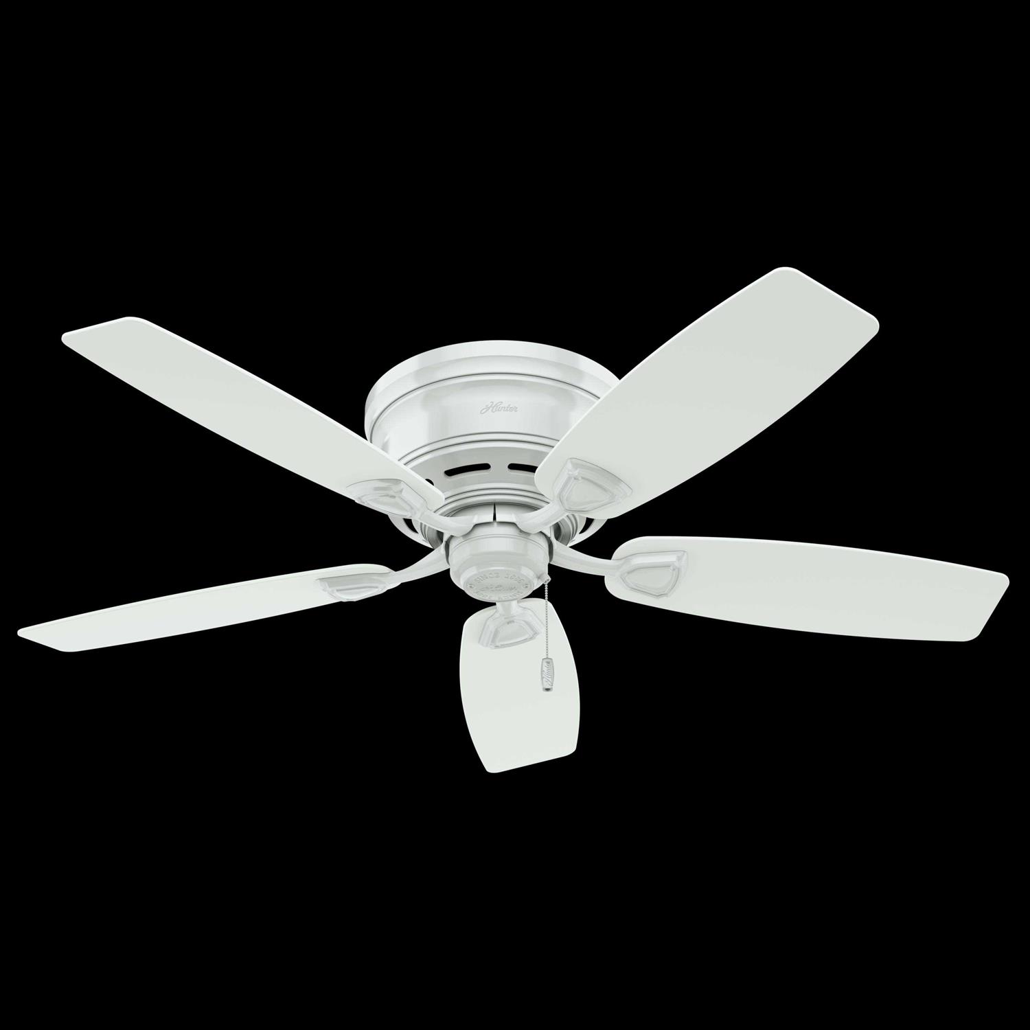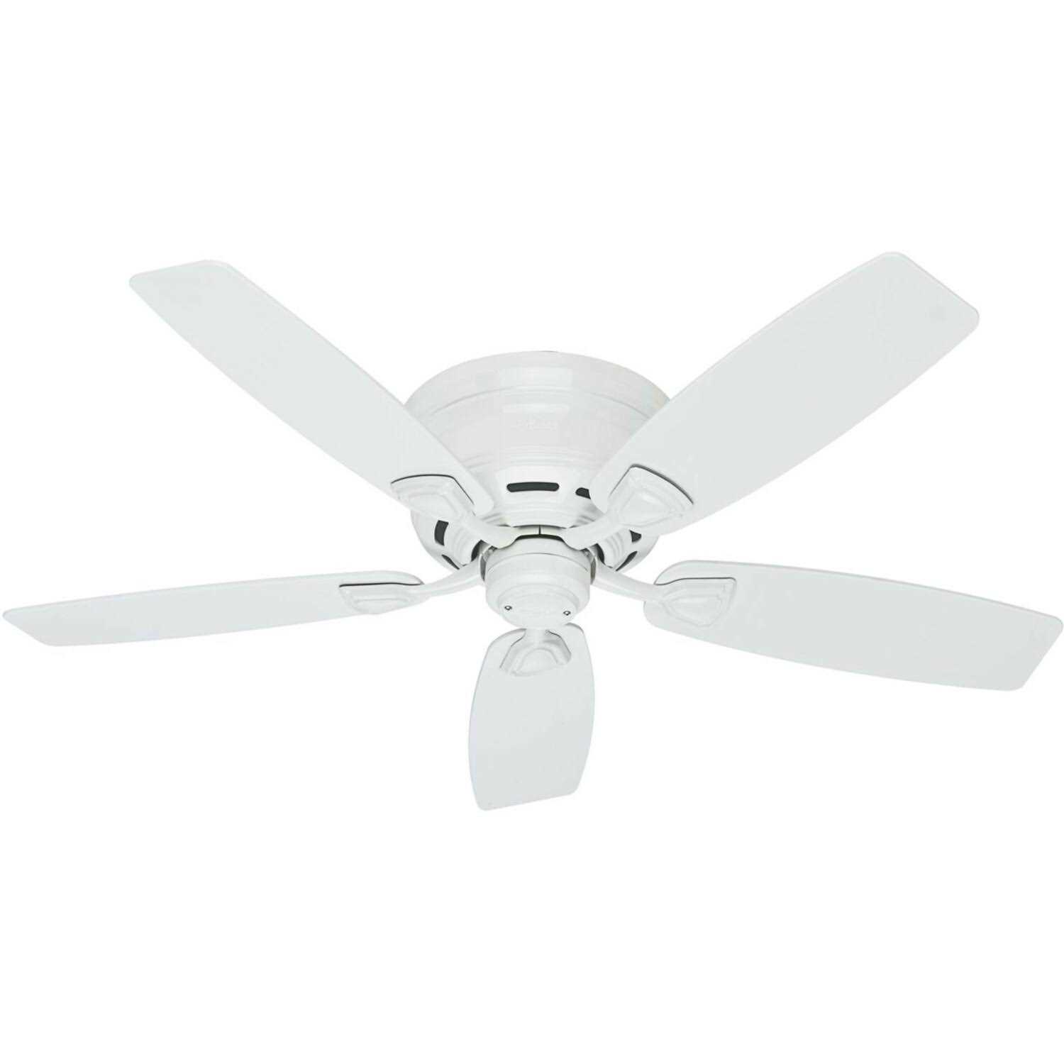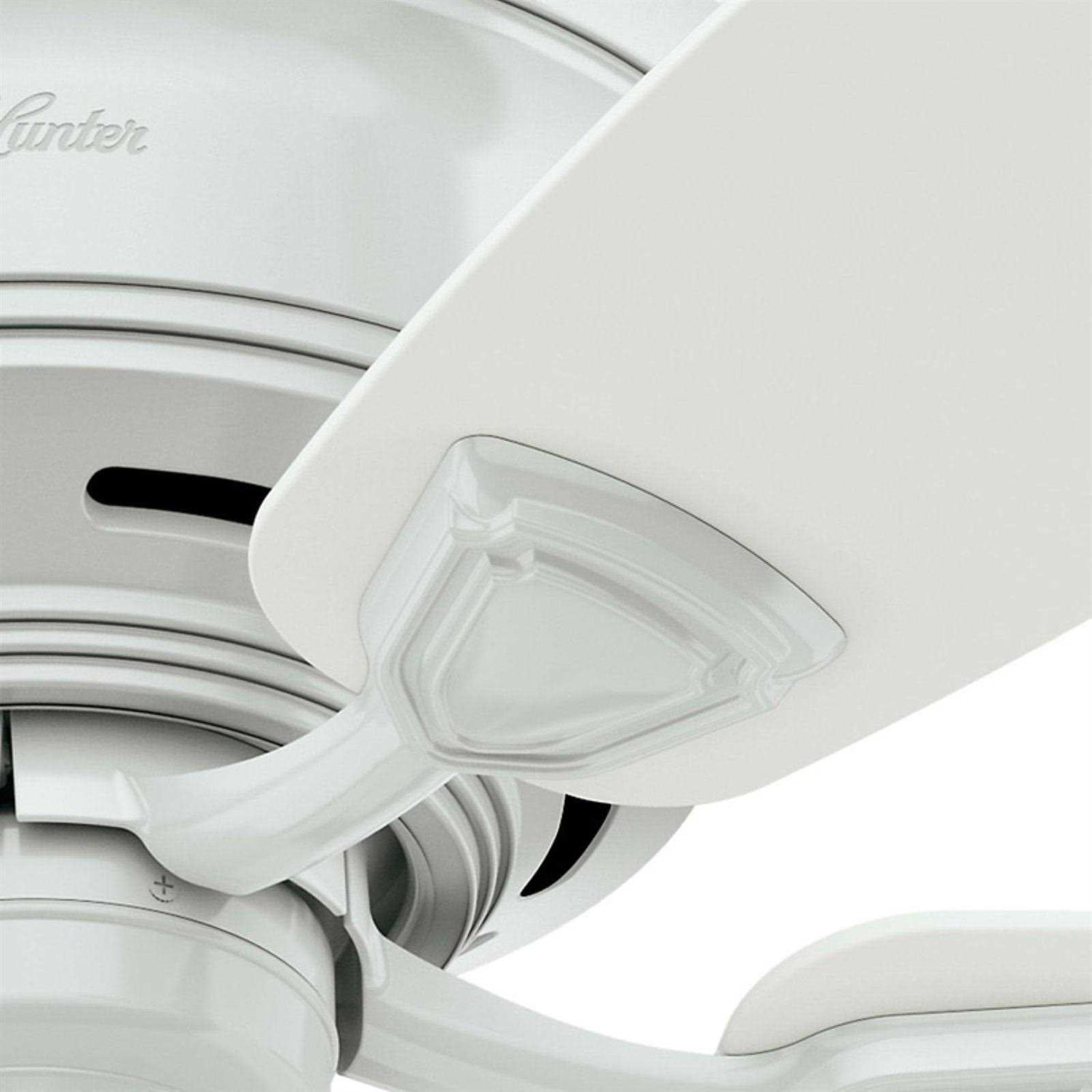 Hunter Sea Wind 48″ Flush Mount Indoor / Outdoor Ceiling Fan – 5 Blades Included Hunter combines 19th century craftsmanship with 21st century design and technology to create ceiling fans of unmatched quality, style, and whisper-quiet performance. Using the finest materials to create stylish designs, Hunter ceiling fans work beautifully in today’s homes and can save up to 47% on cooling costs! Included Components:5 Synthetic Fan Blades – Pull Chain Control – Flush Mount Housing and Mounting Hardware – Product Technologies:Whisper – Wind Motor – The Whisper – Wind motor, available on most Hunter Fan models, delivers ultra-powerful air movement with whisper-quiet performance. Trust Whisper – Wind to produce the cooling power you want without the noise you don’t. – Special Features:Features White blades – Three-speed reversible AC induction fan motor – Flush mount housing is the perfect fit for low ceilings – Compatible with all Hunter universal light kits – Sloped ceiling compatible with additional downrod (sold separately)Limited lifetime motor warranty – Fan Specifications:Blade Span: 48 Inches – Light Kit Compatible: Yes – CFM High: 4072CFM Medium: 2631CFM Low: 1593Max Amperage: 0.52Blade Pitch: 13°Standard Installed Height: 9.32″Sloped Ceiling Compatible: Yes (With additional downrod)Location Rating: Damp (Indoor or Covered Outdoor)Voltage: 120 (US Line Voltage)Suggested Downrod Lengths:9 Foot Ceiling – 12 Inch Downrod10 Foot Ceiling – 18 Inch Downrod11 Foot Ceiling – 24 Inch Downrod12 Foot Ceiling – 36 Inch Downrod13 Foot Ceiling – 48 Inch Downrod14 Foot Ceiling – 60 Inch Downrod15 Foot Ceiling – 72 Inch Downrod Outdoor Ceiling Fans White