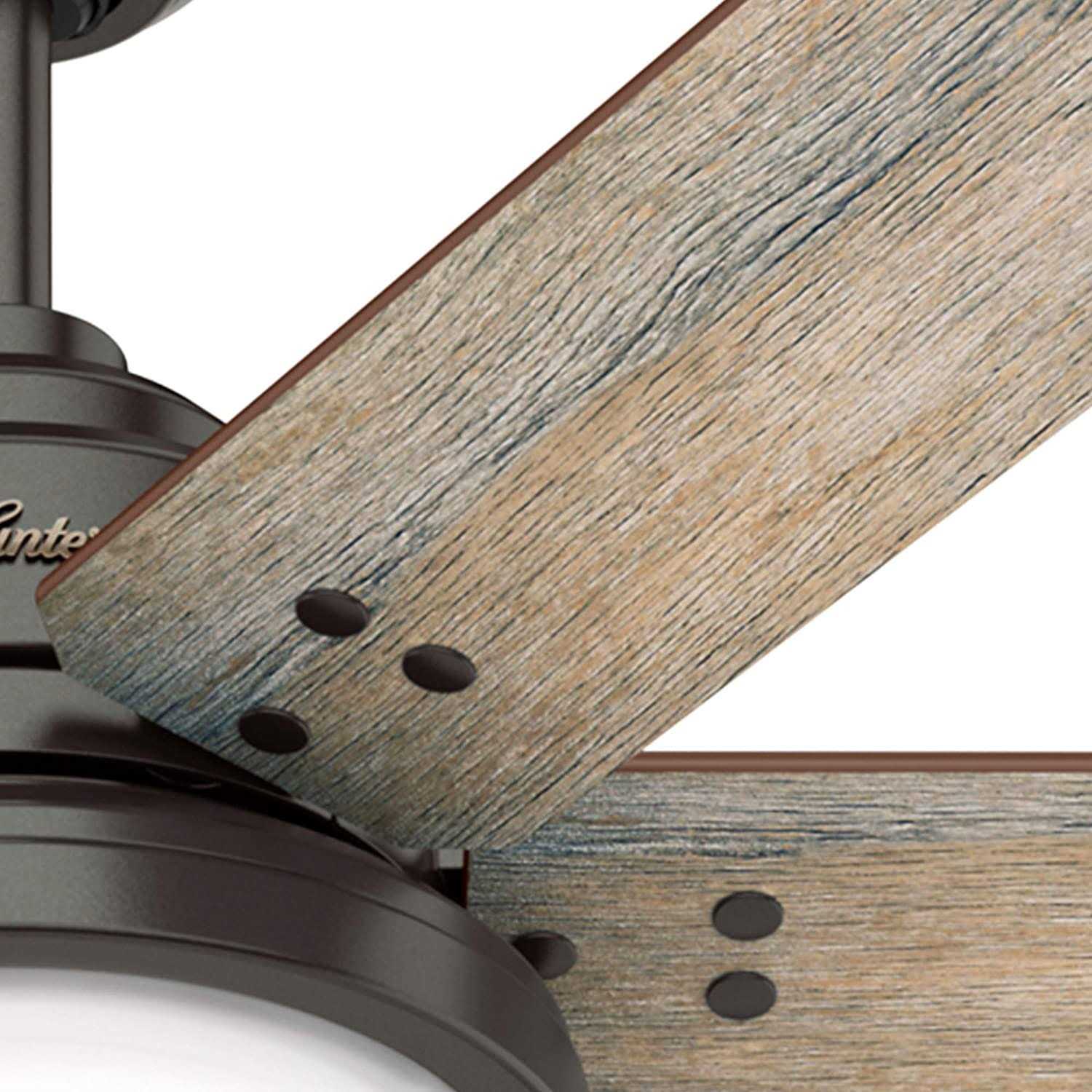 The Warrant great room ceiling fan is here to efficiently cool open concept rooms while adding style to your dcor. This farmhouse style ceiling fan with a LED light features six blades that are reminiscent of a windmill with rivet hardware attaching the blades to the housing. This ceiling fan features an new wall control with the receiver pre-installed for easy installation. Audible beep confirms button command on remote control. 13 degree blade pitch optimized to ensure ideal air movement and peak performance. Includes Integrated light kit with Painted Cased White glass, 1 16W energy-efficient, dimmable LED bulbs to give you control of the ambiance in your space. Also included is a 6-inch and 3-inch downrods to ensure proper distance from the ceiling and optimize air movement at your preferred blade height. Spice up your farmhouse, bedroom, or pretty much any room with this stylish Warrant Ceiling fan from Hunter Fan Company.