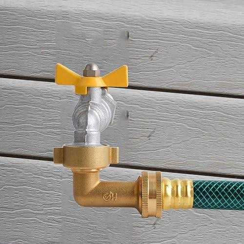 The garden hose elbow is made of lead free brass, durable, corrision resistance and long lasting Connection: 3/4″ FHT x 3/4″ MHT, for outdoor use and standard garden hose threads.