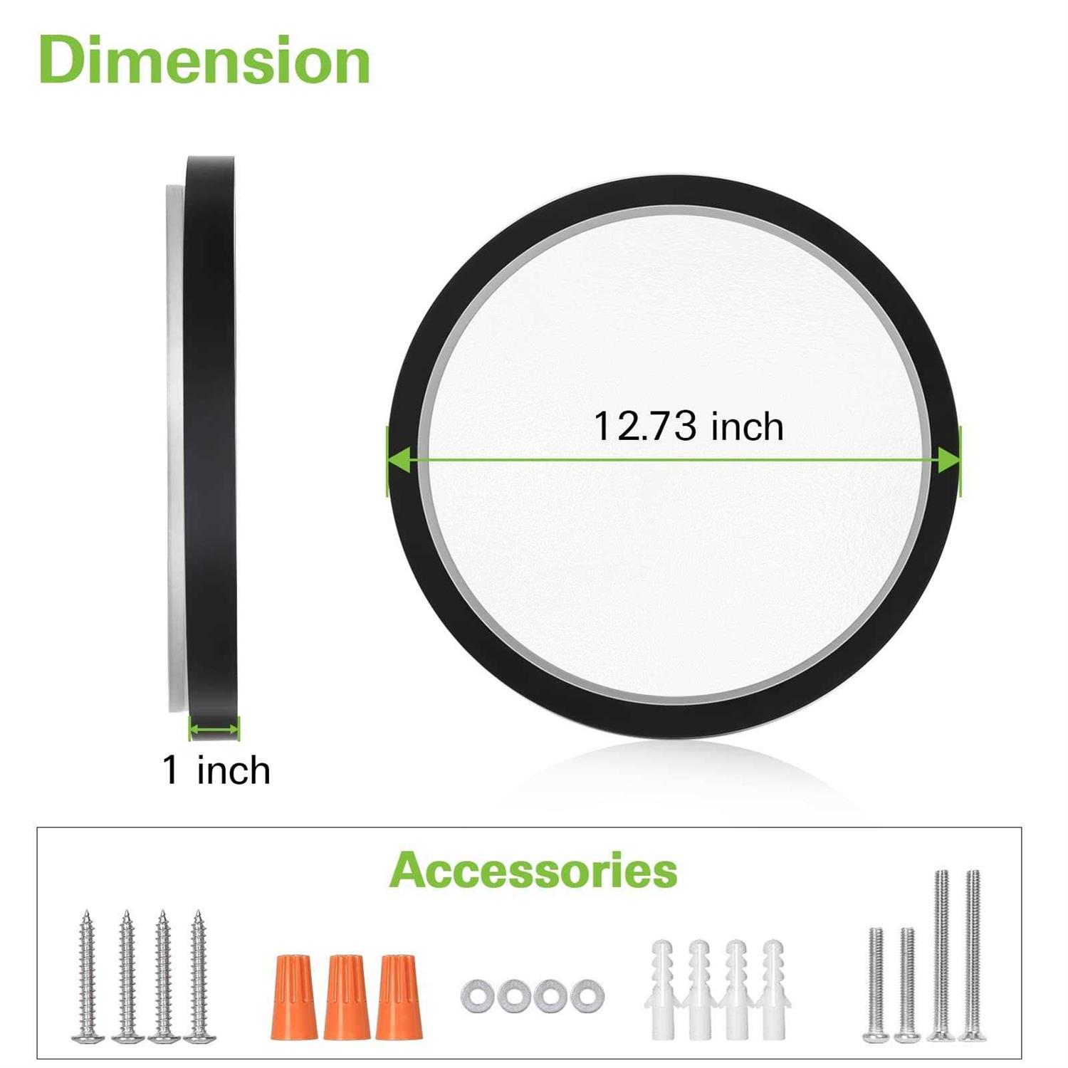 Selectable CCT – Our 13 inch led ceiling lights in downlight mode offers you the option of choosing your color temperature directly on the fixture. With the flick of a switch, you can choose between 3 color temperatures ranging from warm (3000K) to daylight (5000K) before install into your ceiling. Night light Feature – This flush mount fixture in night light mode provides reduced light output at 2000K color temperature of light output for very soft illumination at night. First turn on the light switch to activate the light fixture. Switch the downlight off and back on again to activate night light mode. High Performance – Our ceiling light fixture are integrated LEDs, no bulbs needed. Features 2400 lumens brightness by using only 24W. That is a staggering LED Efficiency of 100 lm/w! Excellent replacement of traditional bulb. Energy Savings of up to 90%. Slide & lock mounting bracket enables a easy and safety installation. Rated for damp location. Smooth Dimming – The flush mount ceiling light’s high quality driver allows our light to dim without any unwanted flickering, flashing or humming noise. Designed for continuous dimming down to 10%, standard 120-Volt electronic low-voltage dimmer is recommended for best performance.
