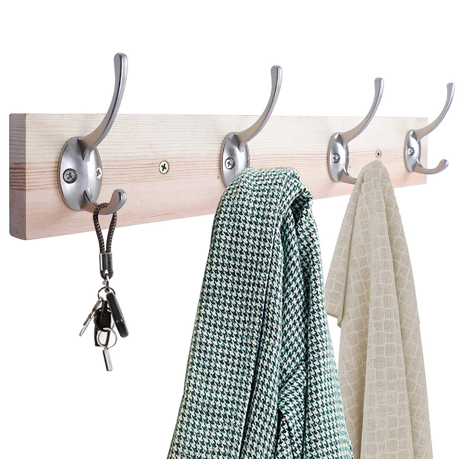 Material: These heavy duty dual prong hooks are made of good quality zinc die cast material, the screws are made of iron, it can easily hold up to 35 lbs of weight. Hard and durable, can widely support coat, scarf, umbrella, bag, towel, key, hat, cup as well as Christmas socks and Christmas wreath Multiple Applications: These retro hooks design with double hooks, perfect for use in bathroom, bedroom, closet, foyer, entryway, fence hanging towels, coat, hats, purse, jackets, robe, back packs. DIY pellet coat rack, and make them easy to find.