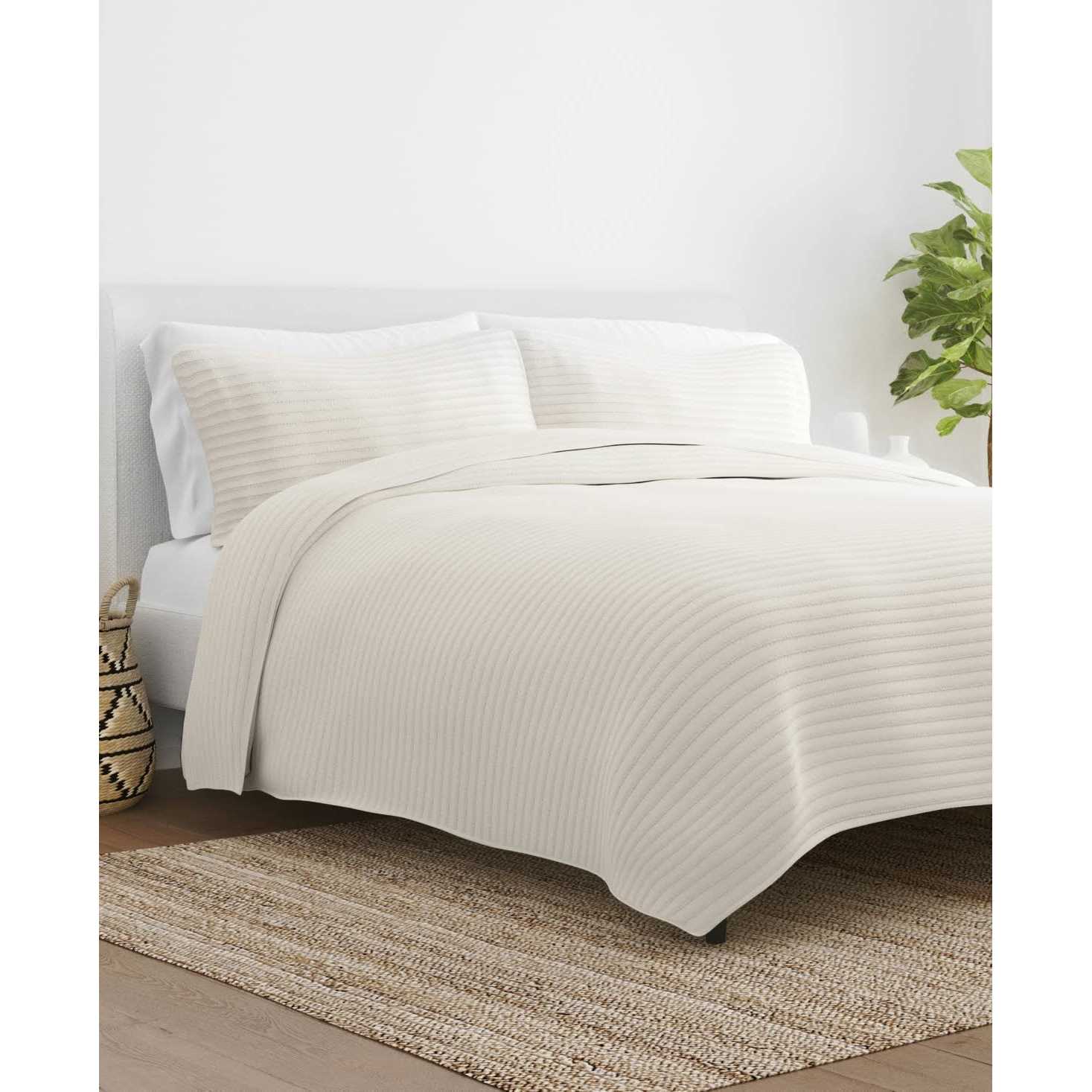 Give your room a comfy new addition with this ultra soft quilted coverlet set with shams. Spun from our premium yarns, this set is twice as strong as cotton, wrinkle resistant and double brushed for a super soft, cozy feel. Available in 3 elegant stiched designs of striped, floral and diamond, elevating the look and feel of any bedroom. The sets are available in 6 gorgeous colors, it’ll be hard to pick only one for your bed refresh. Color: Natural.