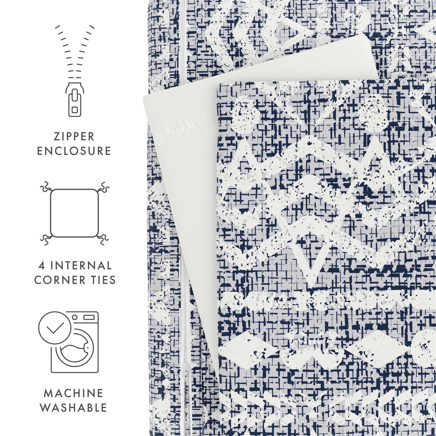 Elevate your bedding with the Becky Cameron Modern Rustic 3 Piece Reversible Oversized Duvet Cover Set. Crafted from 100% brushed microfiber, this set is ultra-soft, smooth, and hypoallergenic. The duvet cover and pillow shams feature a printed modern rustic pattern that reverses to a solid white for a versatile look. With a zippered closure, wicking properties, and superior weave, this set is both durable and comfortable. Machine washable and fade-resistant, it’s easy to care for and maintain its beauty.