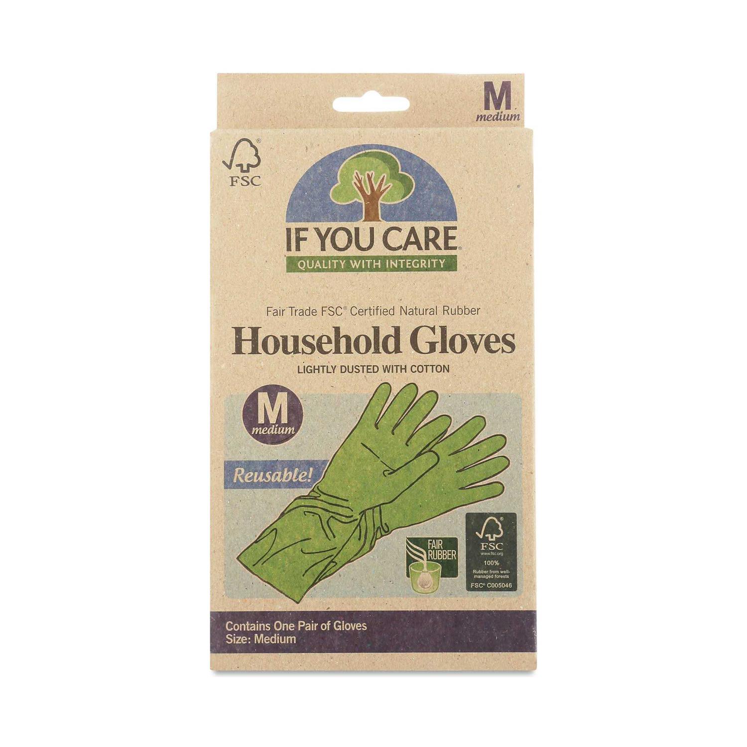 Made from FSC Certified Ethically Sourced Latex. If You Care Household Gloves are made from Forest Stewardship Council FSC certified latex, i.e. the natural rubber is sourced from a responsibly managed plantation. Furthermore, the rubber tappers, who cut the bark to get the raw material flowing, have received a fair trade premium, and it is their decision how to spend their extra income.