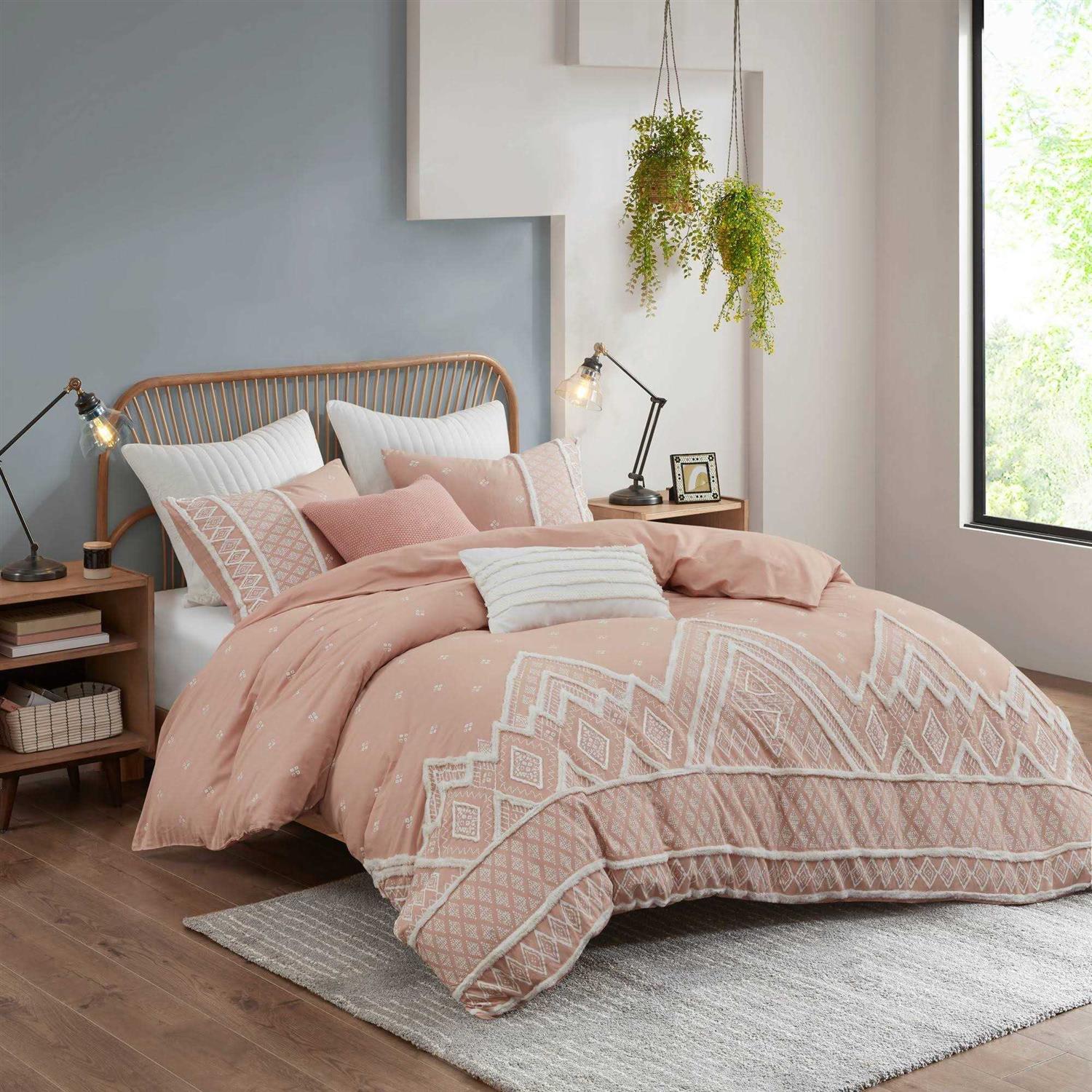 Add a cozy shabby chic update to your bedroom with the INK+IVY Marta 3 Piece Cotton Comforter Set. The natural-hued cotton comforter and shams feature a black diamond print with black chenille textured trim that adds dimension and creates a globally inspired look. Hidden bar tacking gives the comforter a clean, duvet-like finish. Machine washable for easy care, this cotton comforter set combines style and comfort to elevate your bedroom.
