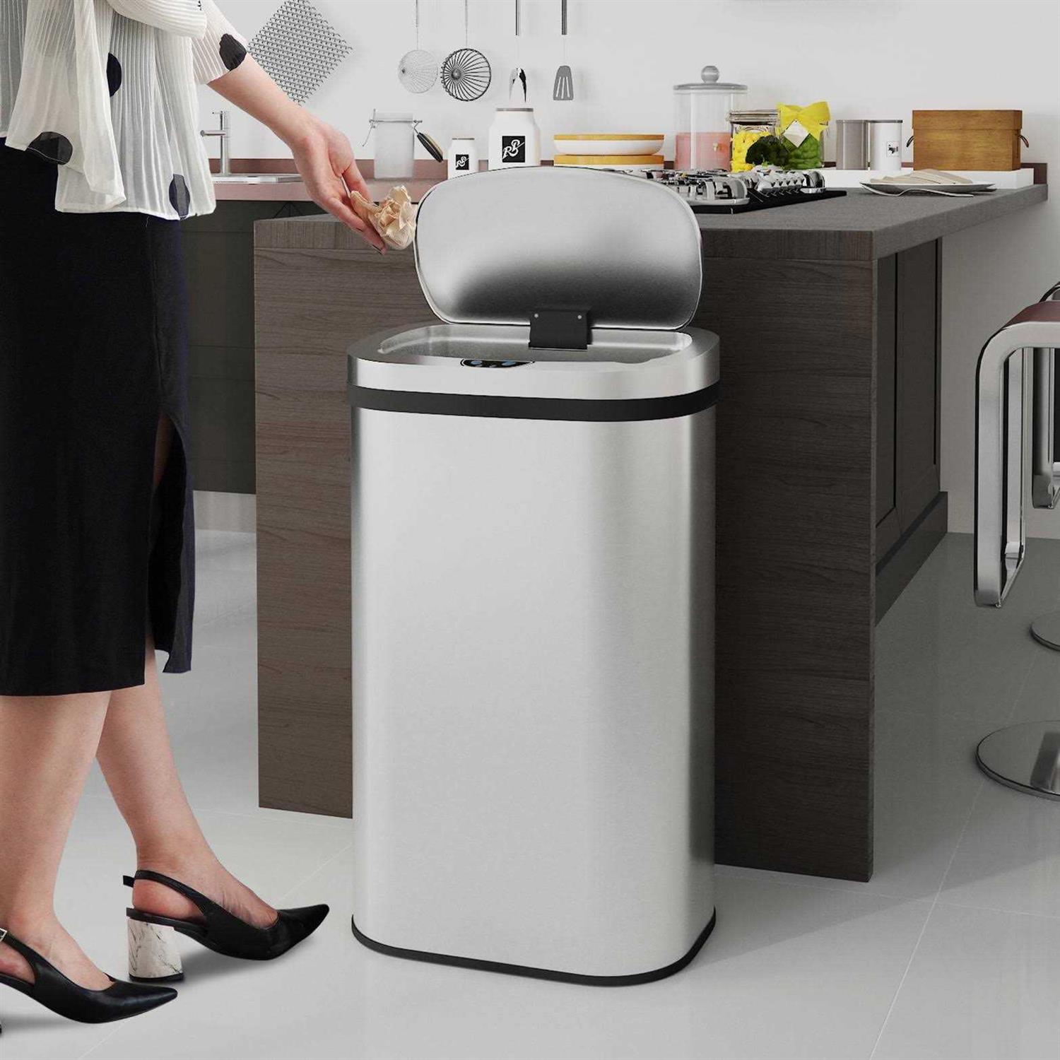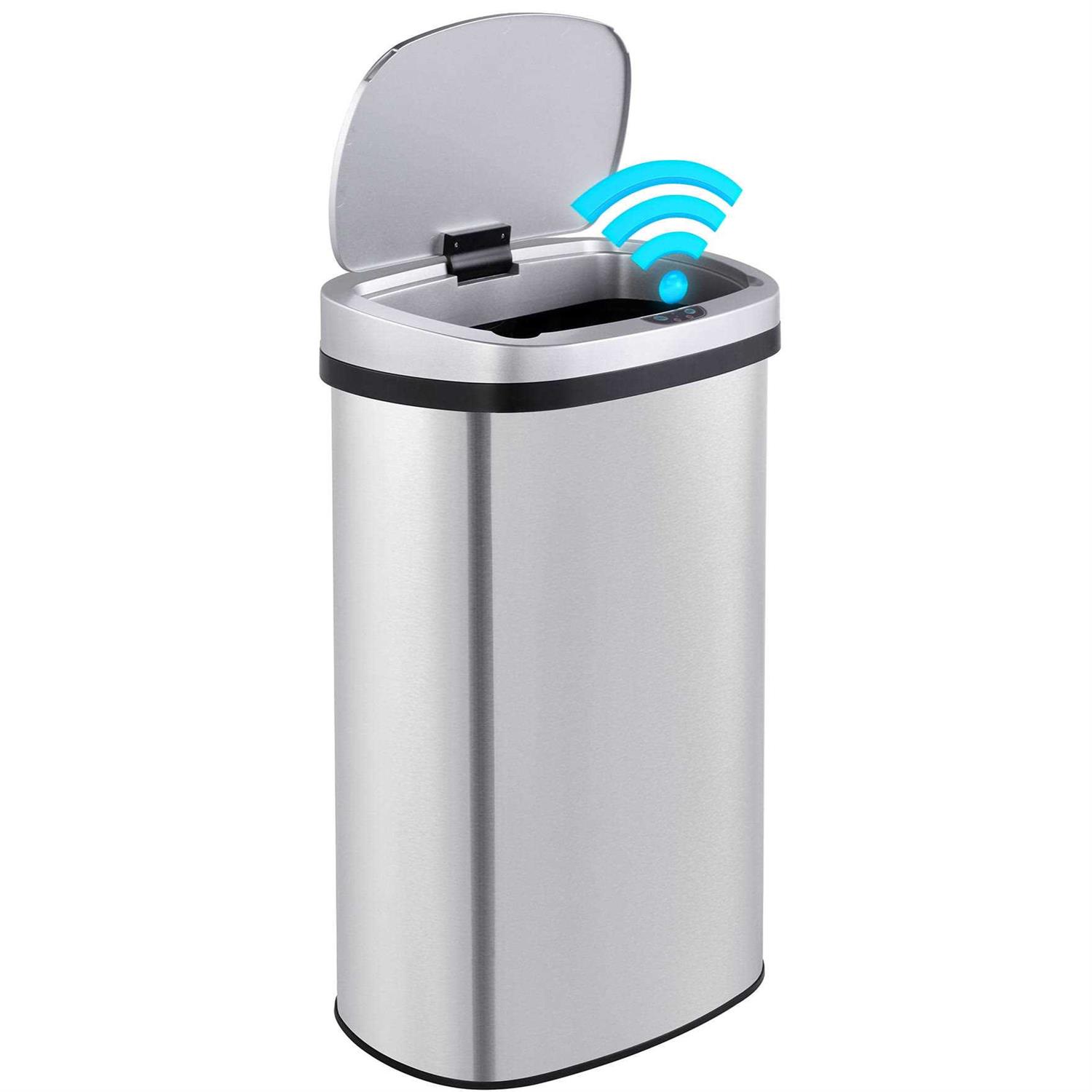 Innovaze Stainless Steel Oval Motion Sensor Trash Can Kitchen