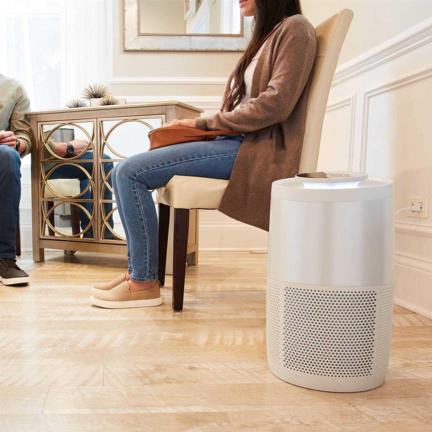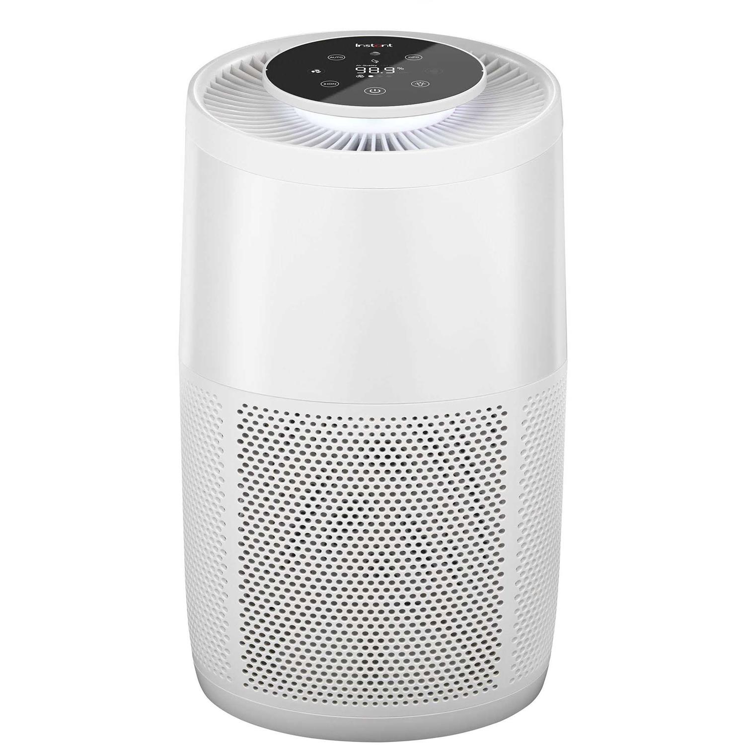 Instant Air Purifier uses sophisticated technology to deliver cleaner air, giving you peace of mind. It pairs an advanced filtration system with plasma ion technology that works to remove 99.9% of the virus that causes COVID-19 from treated air. (1 see above) It also removes 99.9% of other viruses and bacteria from treated air. (2 see above) And the built-in sensors monitor the air quality and adjust the fan speed automatically, to work 24 hours a day, 7 days a week. (3 see above) The advanced filtration system includes a HEPA-13 filter with carbon layer that captures 99.97% of dust, dander, smoke, and other ultrafine impurities in the air and helps reduce smells. Plasma ion technology projects positive and negative ions for cleaner air. Instant Air Purifier starts delivering cleaner air in minutes and completely recycles the rooms air 5 times per hour. (5 see above) With Instant Air Purifier, youll inhale cleaner air, and exhale peace of mind. And it comes from the makers of Instant Pot, with all the quality, convenience and versatility youve come to expect from Instant.
