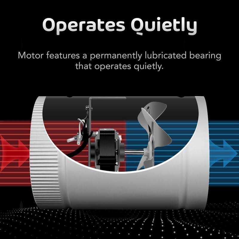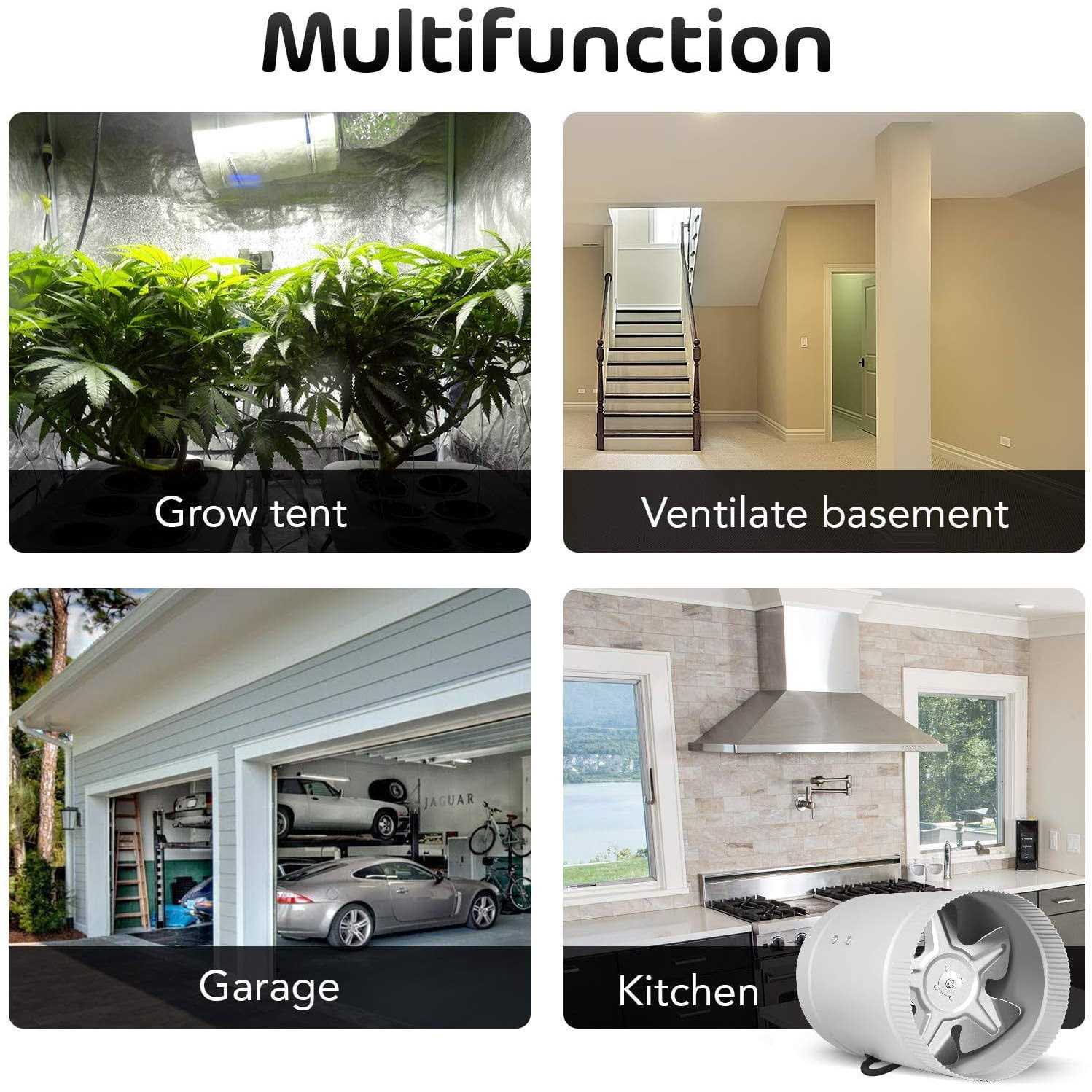 Efficient with low noise: Lead to great effects with a diameter of 6 inches, speed of 2800 RPM and 174 CFM air flow. A less than 60.7 dB noise level does not have any harm and will not disturb your work. High safety and easy to install: With insulating coating, high safety factor. Portable, lightweight and easy to install. Sufficient 4.9′ grounded power cord inside is convenient to use. Durable: Superior balanced centrifugal impeller and high strength housing for long service life. The motor features a permanently lubricated bearing that operates quietly and requires no maintenance. Wide application: Exhaust air for HVAC to remove heats & odors or intake fresh air, used in grow tents, kitchens, bathrooms, basements, attics, garage, workshops etc. Specification: Voltage: 110-120V; Wattage: 37W; Power Cord: 4.9FT; Max operating temp of motor is 130°C / 266°F. Max ambient temp is 60°C / 140°F. Note: Please turn the fan off immediately if the blades