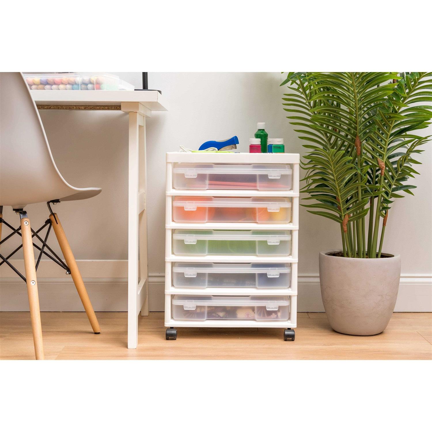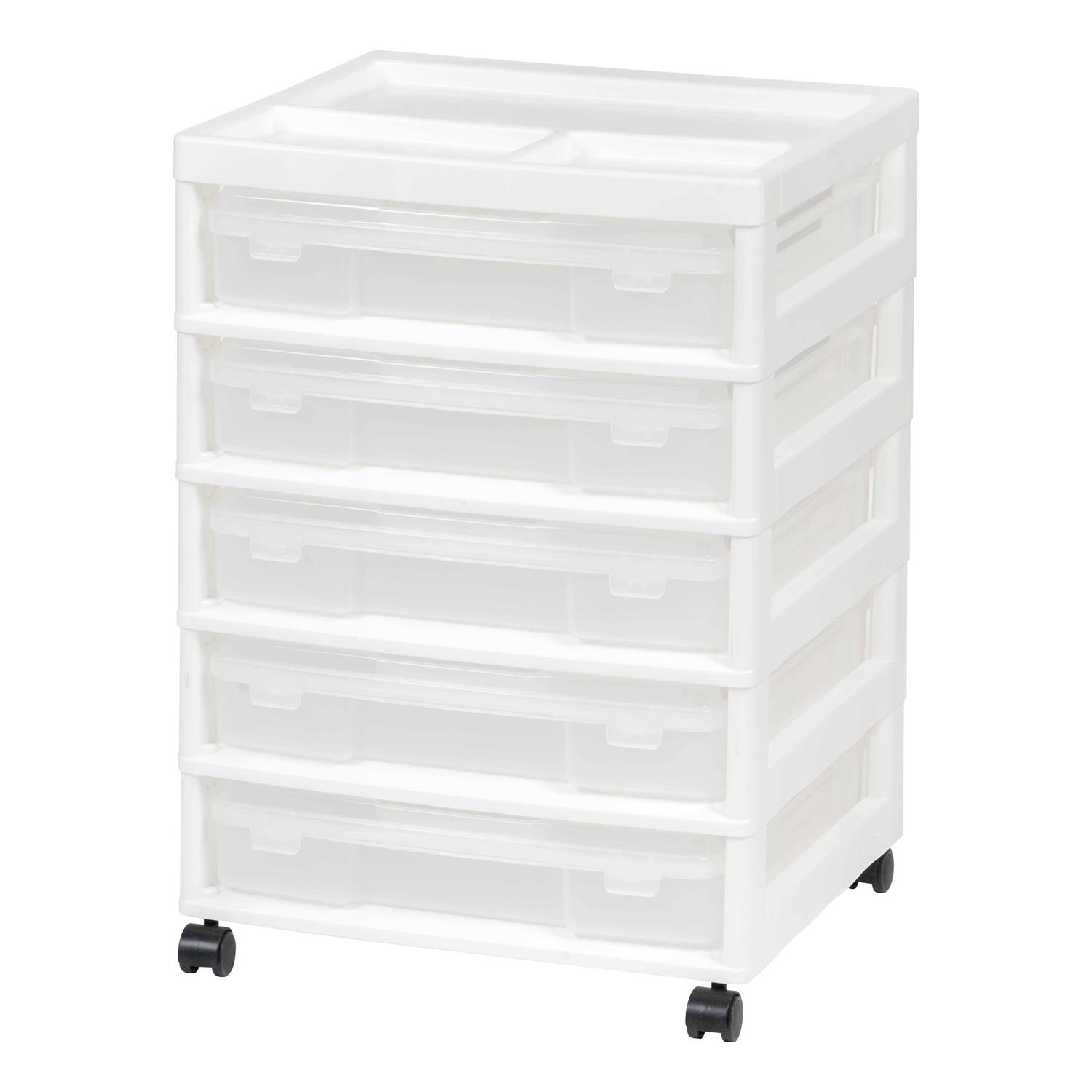 IRIS 5 Drawers Plastic Scrapbook Rolling Storage Cart with Organizer Top and Casters