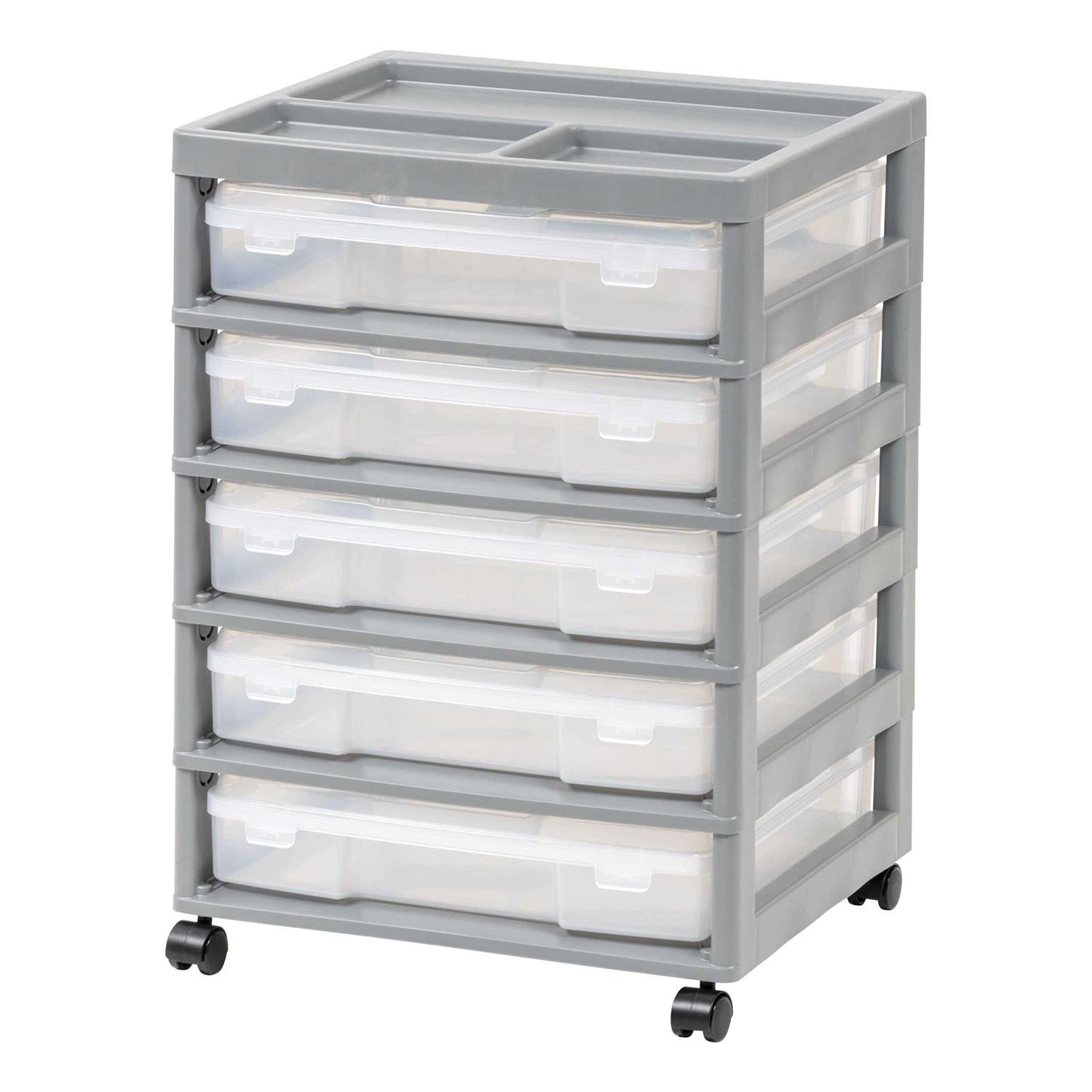 IRIS 5 Drawers Plastic Scrapbook Rolling Storage Cart with Organizer Top and Casters