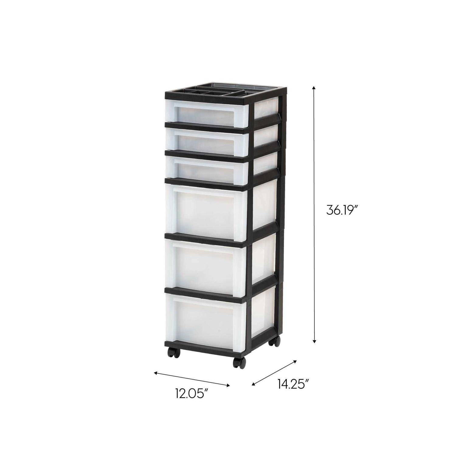 Is your desk overrun with sloppy stacks of paper? Too much clutter in your craft space? This IRIS USA 6-Drawer Plastic Storage Cart with Organizer Top and Wheels can help you get organized in no time. Three large drawers and three shallow drawers hold everything from craft supplies to reams of paper, so your space stays tidy. Each drawer accommodates 8.5 inch x 11 inch letter size paper and the built-in divided organizer top keeps extra-small items organized and accessible.
