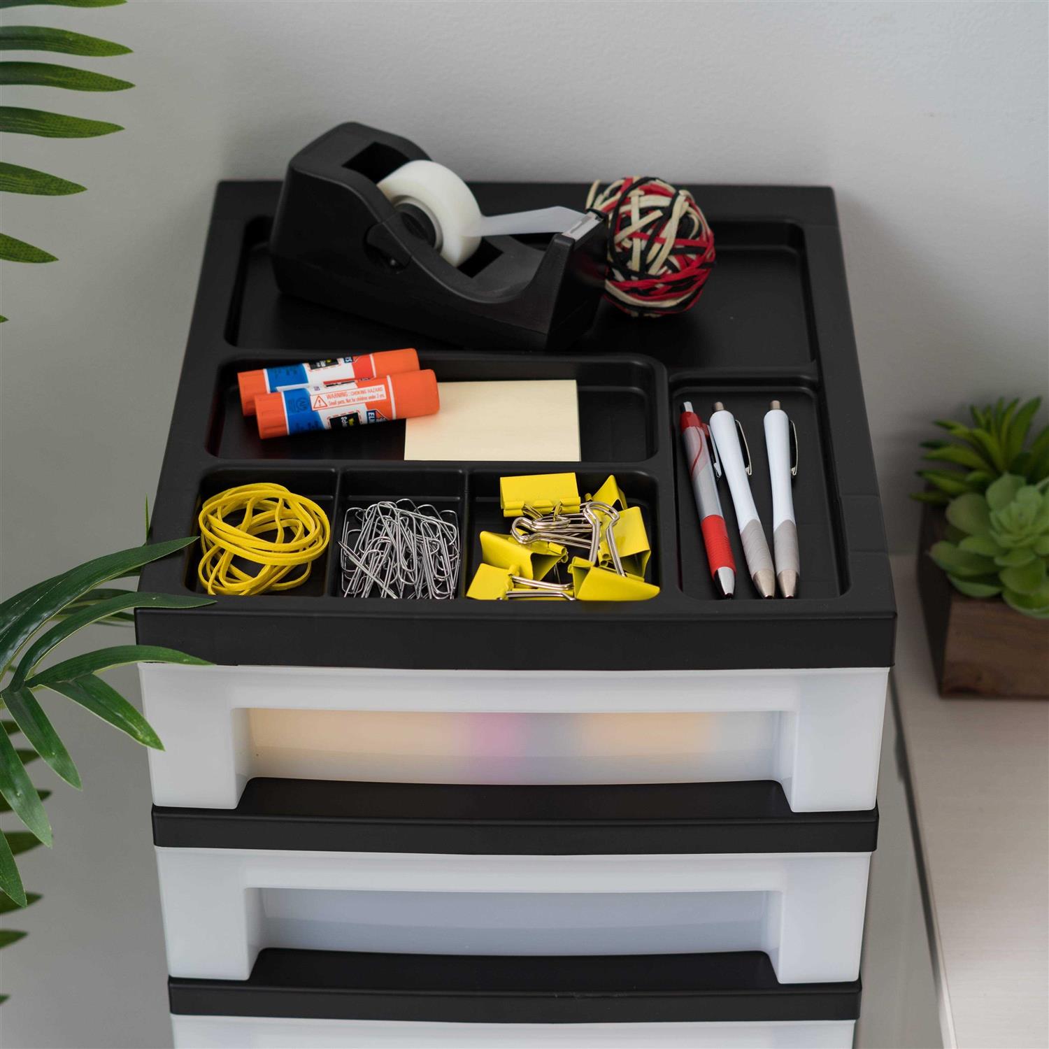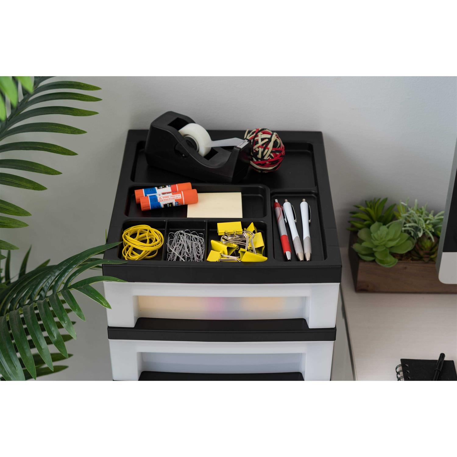 The IRIS 9 drawer storage cart with organizer top can help you get organized in no time. This drawer organizer features 4 deep drawers that hold everything from craft supplies to reams of paper, so your space stays tidy. Each drawer accommodates 8.5″ x 11″ letter size paper and the built-in divided organizer top keeps extra-small items organized and accessible. This product also features casters making this a versatile cart drawer storage system perfect for the office, bathrooms, bedrooms, laundry rooms, hobby rooms, dorms, and more.