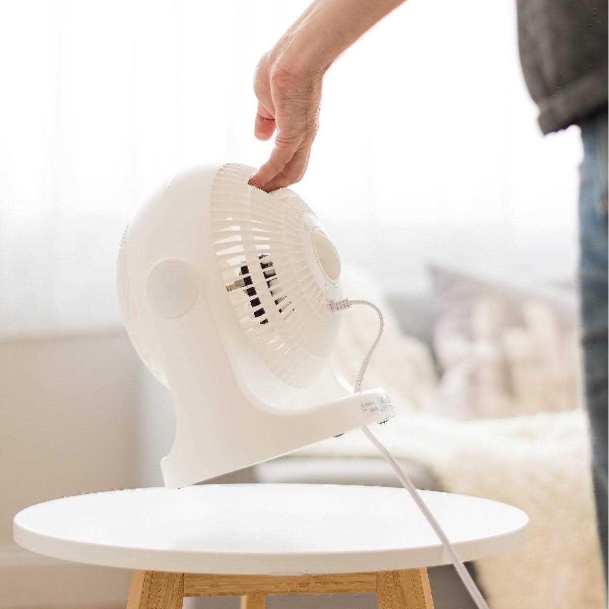 Perfect for the office, home or a dorm room, the WOOZOO personal fan offers powerful cooling air while compact size unit saves space. The adjustable fan head pivots vertically 360 degrees, with three speeds settings on tabletop circulator to meet your cooling needs. Enjoy extra-quiet cooling on the virtually silent “low” setting. Desktop fan provides up to 157 ft² area coverage, and the 70.9” cord makes it easy to reach the outlet.