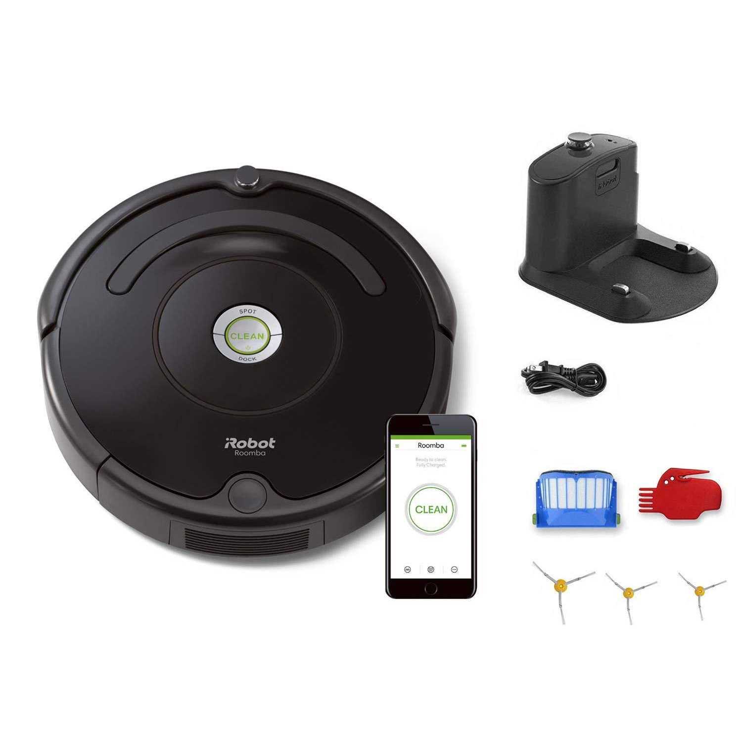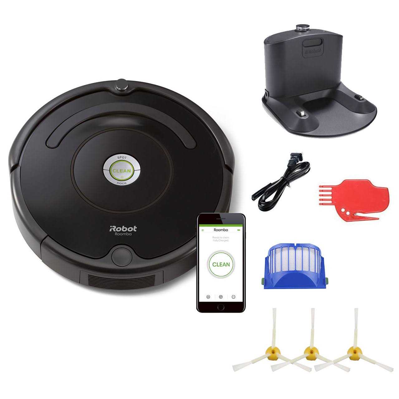 Connect to clean from anywhere with the Roomba 675 robot vacuum. The patented 3-Stage Cleaning System is specially engineered to loosen, lift, and suction everything from small particles to large debris from carpets and hard floors. Just press Clean or schedule Roomba on the go with the iRobot HOME App. Cliff Detect sensors prevent the robot from falling down stairs or tumbling over drop-offs.