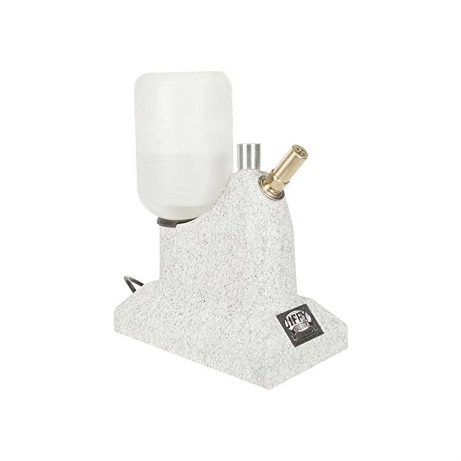 Hat Steamer ElectricJ-1 Jiffy Hat Steamer, 120 Volt 1300 watt solid brass heating element (120 volt for North America use only) Die cast aluminum housing Quick two minute heat-up time 2 Hour steam time per filling Made in the USA J-1 Hat Steamer – GrayThe J-1 is our standard hat steamer for home or light commercial use and is designed as a tabletop unit. These Jiffy Steamers are used worldwide in retail outlets, supply houses and hat stores to block, stretch, crease, shrink or shape straw and felt hats. Ideal applications include removing nesting rings in seconds, freshening felt to a velvet texture and shaping the hat to the preference of the owner. The J-1 hat steamer heats up in less than 2 minutes and will provide steam for 2 hours per filling.The standard Model J-1 Jiffy hat steamer is recommended for home or light commercial use with 1300 watts of steaming power. The Model J-1 is equipped with a plastic 1 gallon water bottle, no-drip check valve system, and brass hat nozzle for steaming and shaping hats. The J-1 Hat steamer heats up in 1 minute and is equipped with an on/off switch.