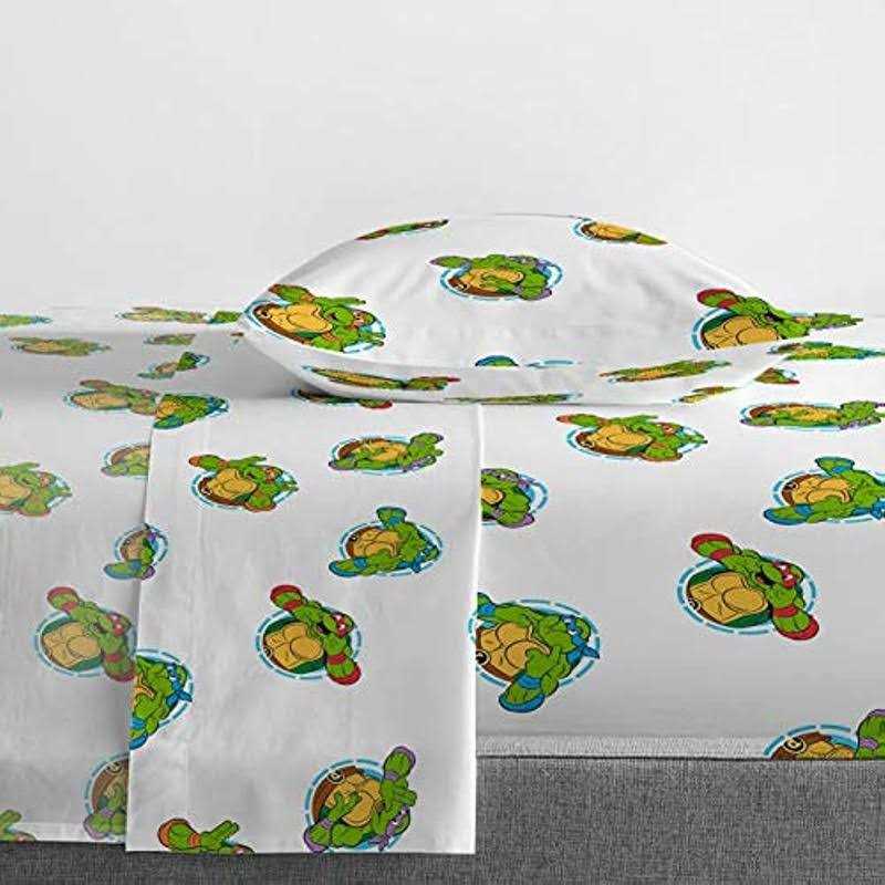 Protect the city with your favorite superhero team with this Nickelodeon Teenage Mutant Ninja Turtles Green Bricks twin size bed set. This cool and bold 5 piece bed set will dress up any bedroom dcor. Kids will be excited to jump into bed with this super soft bed set featuring your child’s favorite turtles: don’tello, Leonardo, Michelangelo, and Raphael. Sure to keep you warm, this comforter is stuffed with polyester fill for loft and cozy comfort. Quilt stitching holds fill in place and adds decorative flair. Durable polyester fill is soft, comfy, and warm and holds its shape after multiple washings. Reversible design allows you to instantly change the look by simply flipping the comforter over. Complete bedding ensemble includes comforter, fitted sheet, flat sheet, one 20 x 30 inch standard pillowcase, and one 20 x 26 inch sham. Easy care, machine wash cold, tumble dry low.
