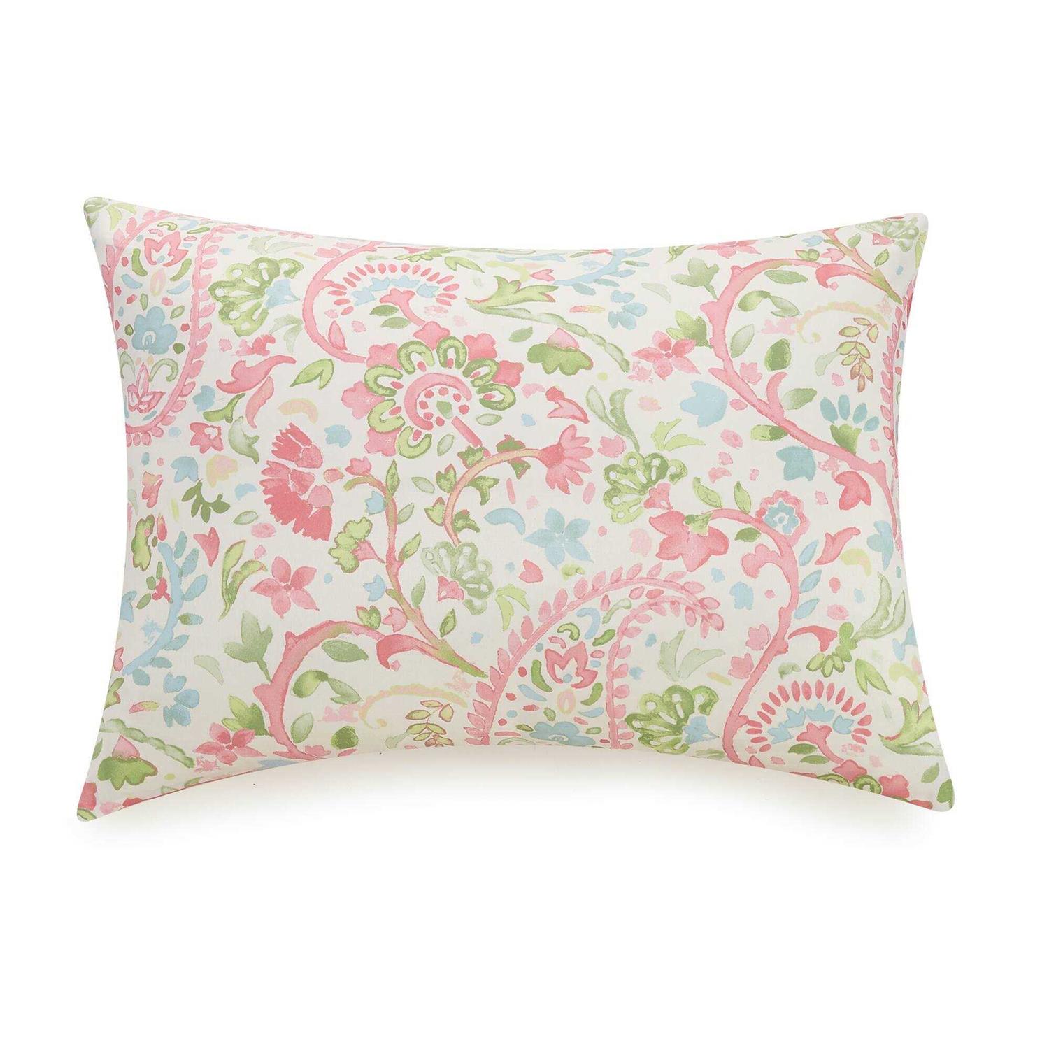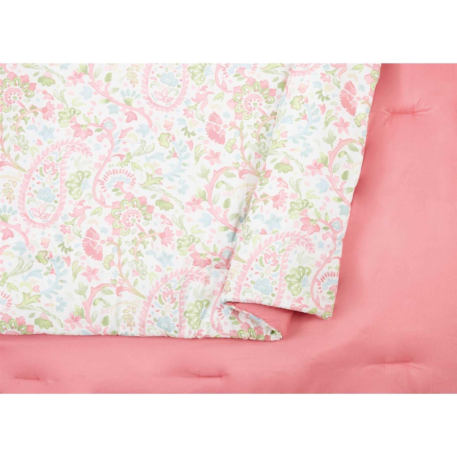This new comforter design from Jessica Simpson will brighten up any bedroom. A pretty, tossed heirloom floral and paisley print covers the top of bed. The rose bouquets are in subtle shades of watercolor pale pink, green and blue. The accent square pillow is intricately embroidered with alluring paisley motifs.This gorgeous comforter will mix with any dcor and bring beauty and a touch of romance to your bedroom.