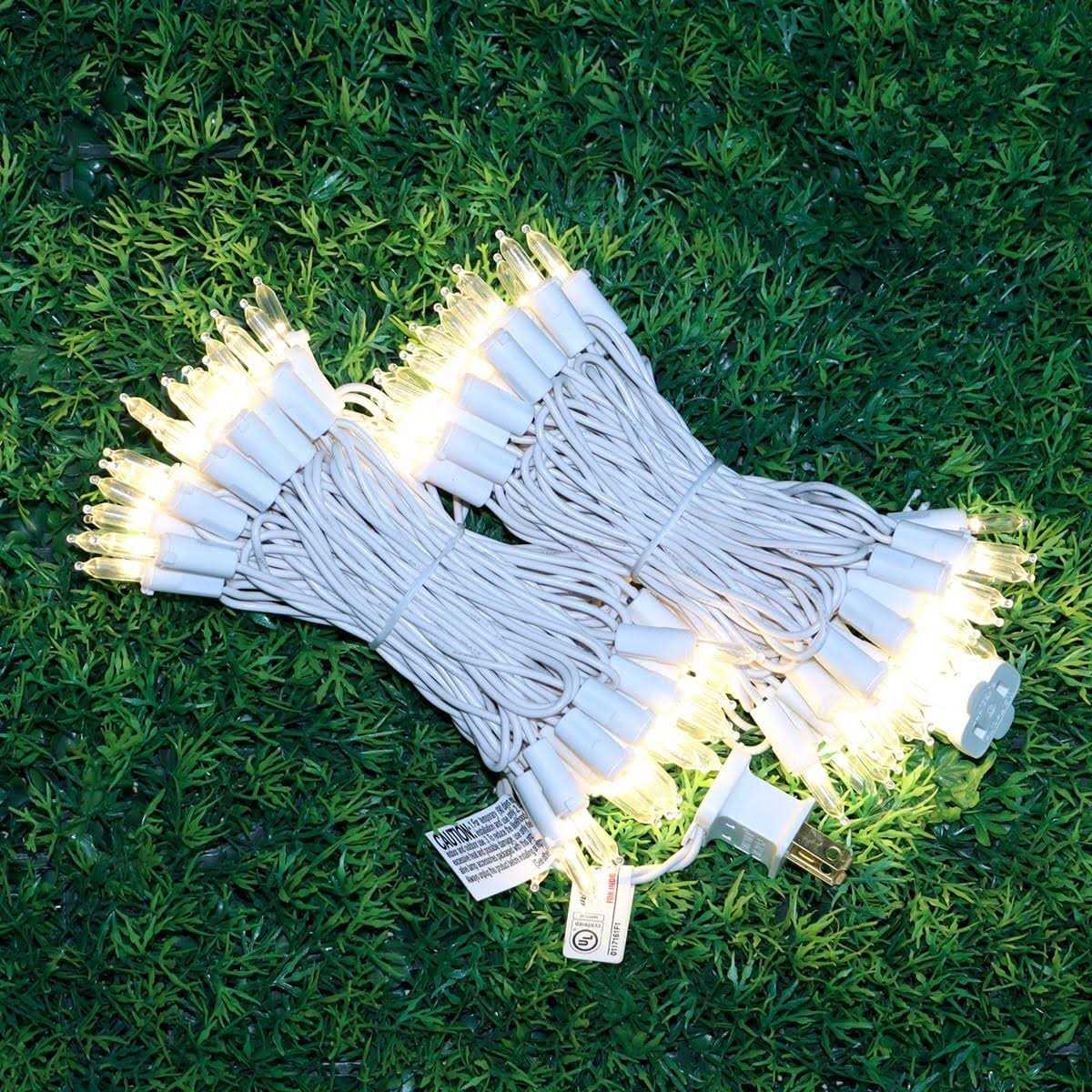 LED ALWAYS ON OUTDOOR STRING LIGHTS: Maybe, you’ve had a situation where a whole set of string lights went out because one or more bulbs broke, you’re luck today, because this string lights helps you solve this problem: when have one or more bulbs drop or disappear, the rest of the lights still work, without affecting others string lights brightness or longevity. REFERENCE DATA: 100 super bright warm white LEDs, 35 feet length 22# white cord, 4 inch spacing, can be connected continuously. 2 replacement bulbs and 1 fuse. AC 120 volts 13.2 watts, it can be connected 16 sets and life span of more than 30,000 hours OPTIMIZATION OF MANUAL AND AUTOMATIC PROCESS: According to the characteristics of traditional Christmas lights made by hand, and the perfect combination of the latest automatic mechanized production line, so that they have the characteristics of traditional decorative lights, but also the quality of the lights has been greatly optimized. 100 LED warm white Christmas lights, if one or multiple bulbs damaged, the remaining bulbs will still light up. 35 Ft length and 4 inch spacing. UL certified 22# white wire,end-to-end plugs that connect up to 16 sets (1600 LEDs), allowing you to decorate your house, party, garden as long as you want.