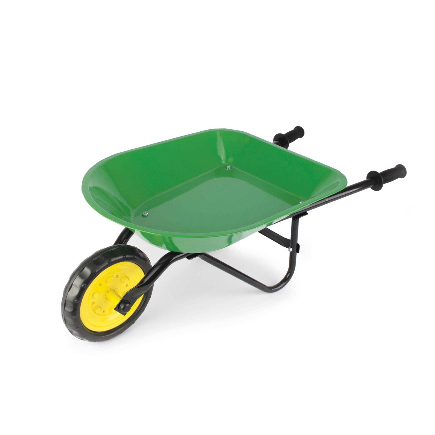 Kids feel just like mom and dad helping out in the garden! Standing 11 inches tall, it’s sized just right for the youngest of farmers. But that doesn’t mean it’s any less durable and ready for work. It’s built with real, heavy-duty steel, a durable easy-rolling wheel, and comfy vinyl handgrips designed to be easy on young hands. Pretend-play and real-life fun on the farm combine perfectly with the John Deere Steel Wheelbarrow! John Deere Steel Wheelbarrow Real-life wheelbarrow designed just-right for kids Encourages gross motor skills, active play, outdoor play, imaginative play, role play Kids feel just like mom and dad helping out in the garden! Made with strong, heavy-duty steel Features smooth-rolling wheel, comfy vinyl hand grips Includes one steel wheelbarrow Easy assembly – Detailed instructions included Measures 34 x 16 x 11 inches High-quality materials and construction – Lasting durability Toys. Active Play. Imaginative Play. Outdoor Toys.